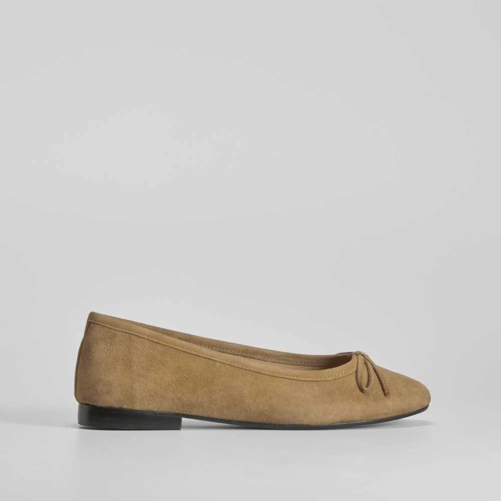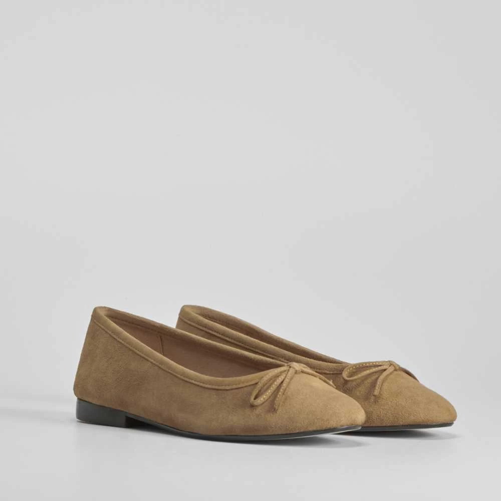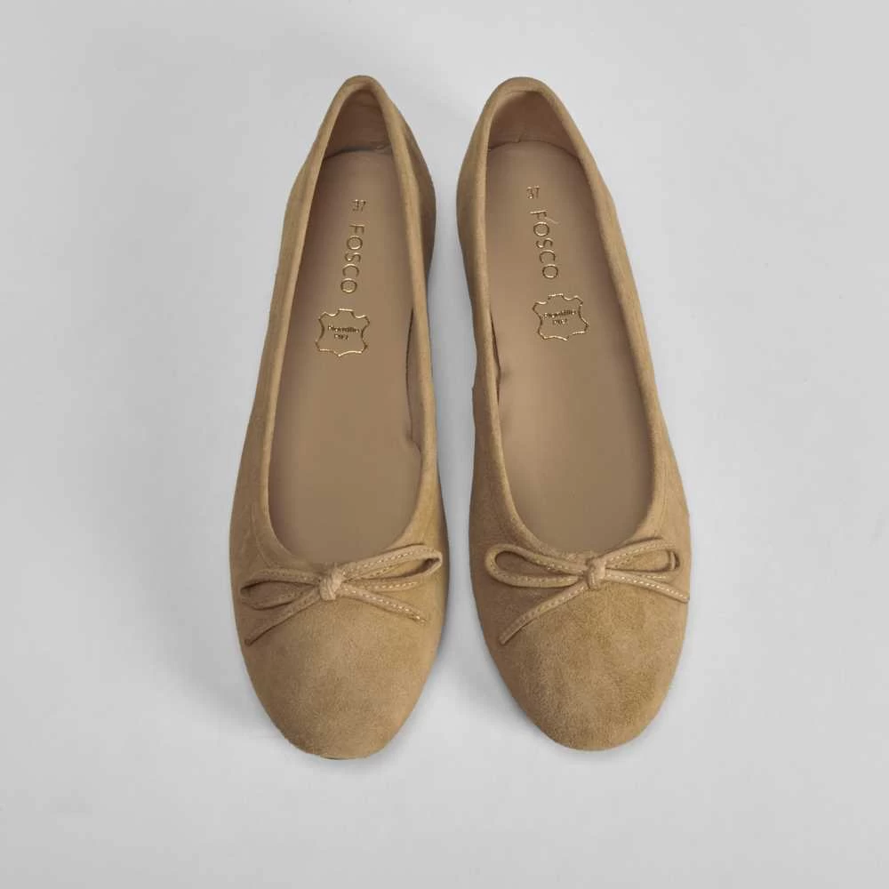 Bailarina de piel básica de la marca FOSCO en color camel con un lazo entonado en la puntera.