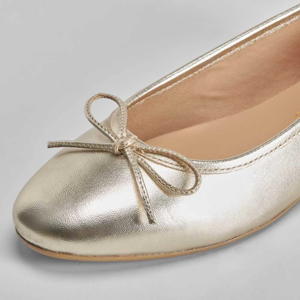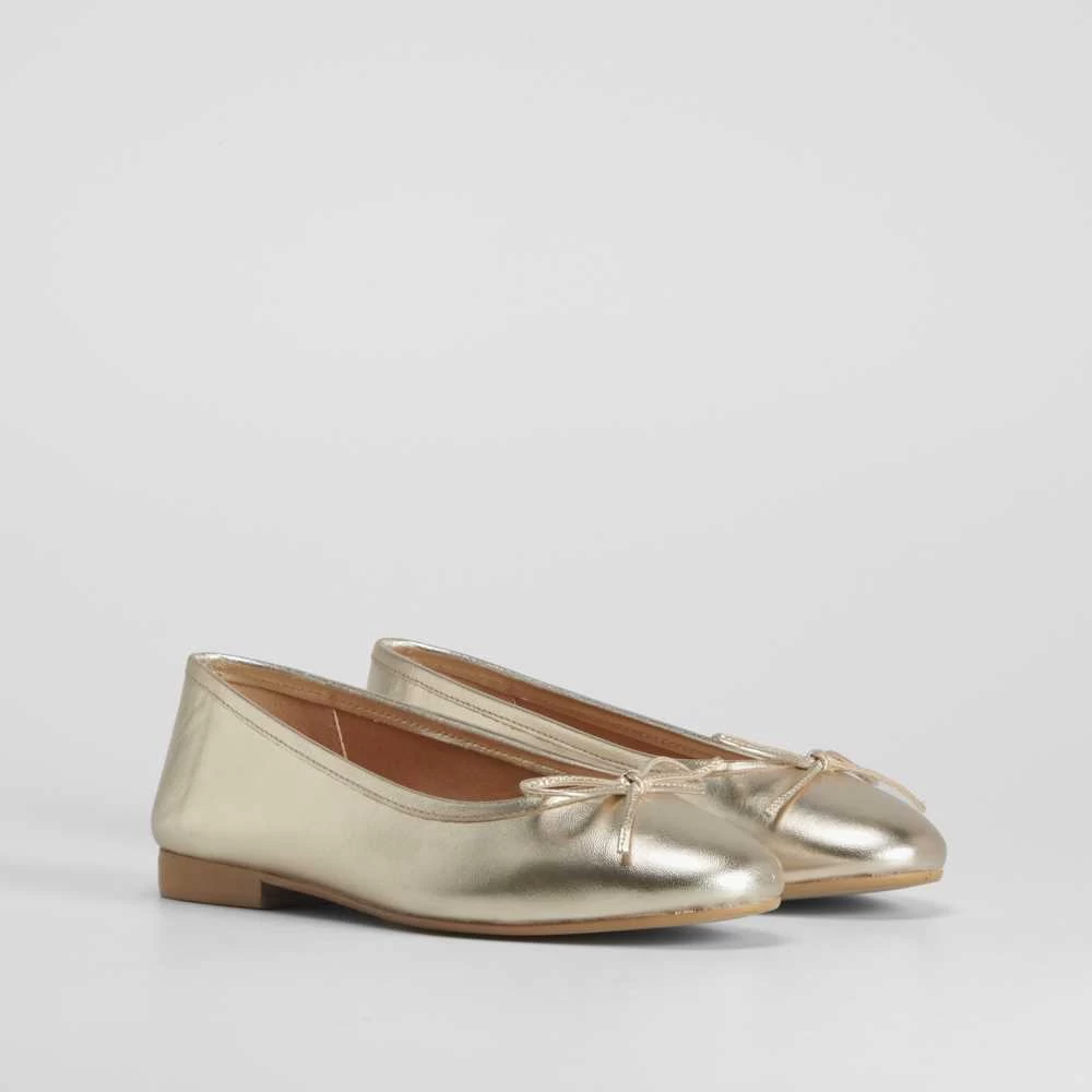Bailarina de piel laminada de la marca FOSCO en color oro con un lazo entonado en la puntera.