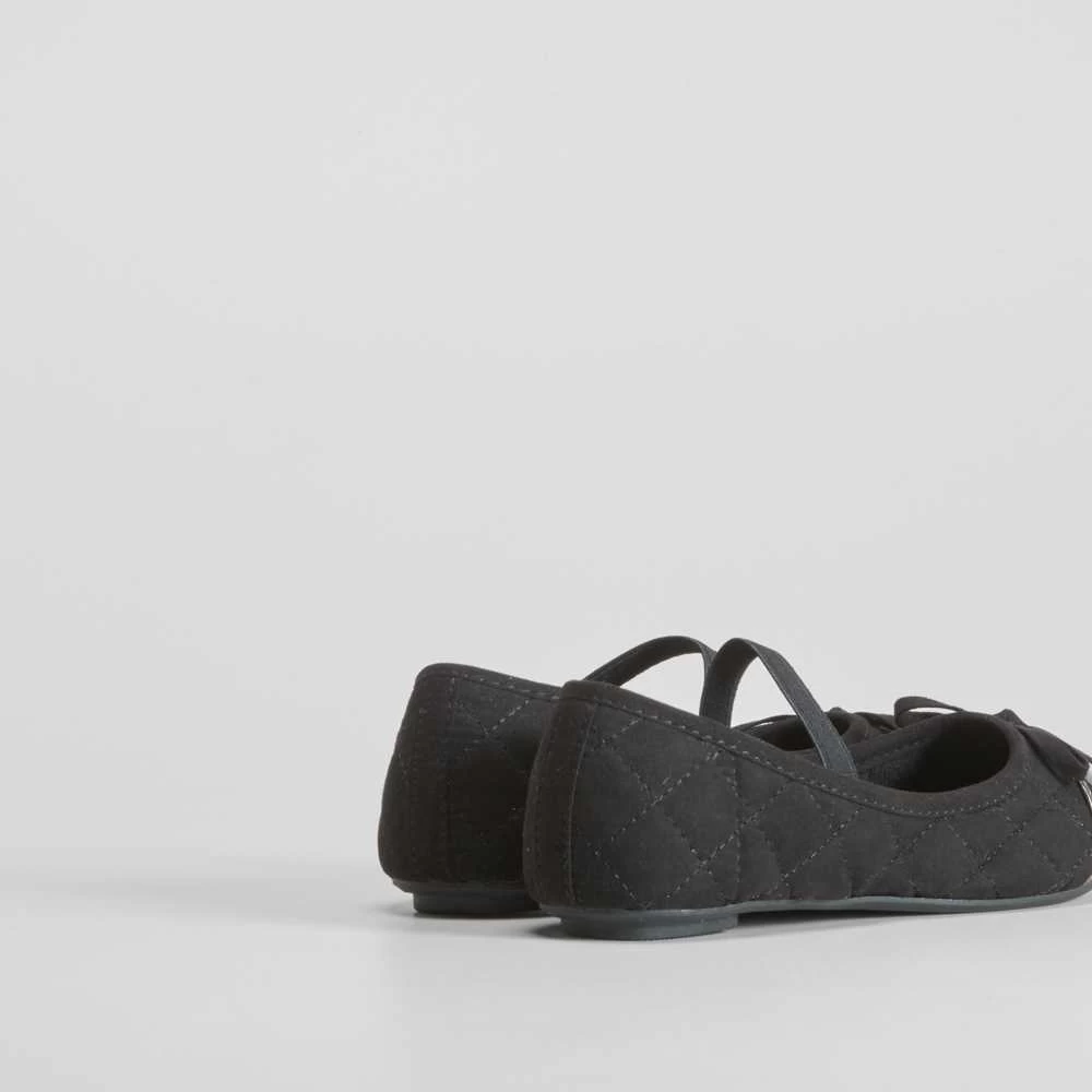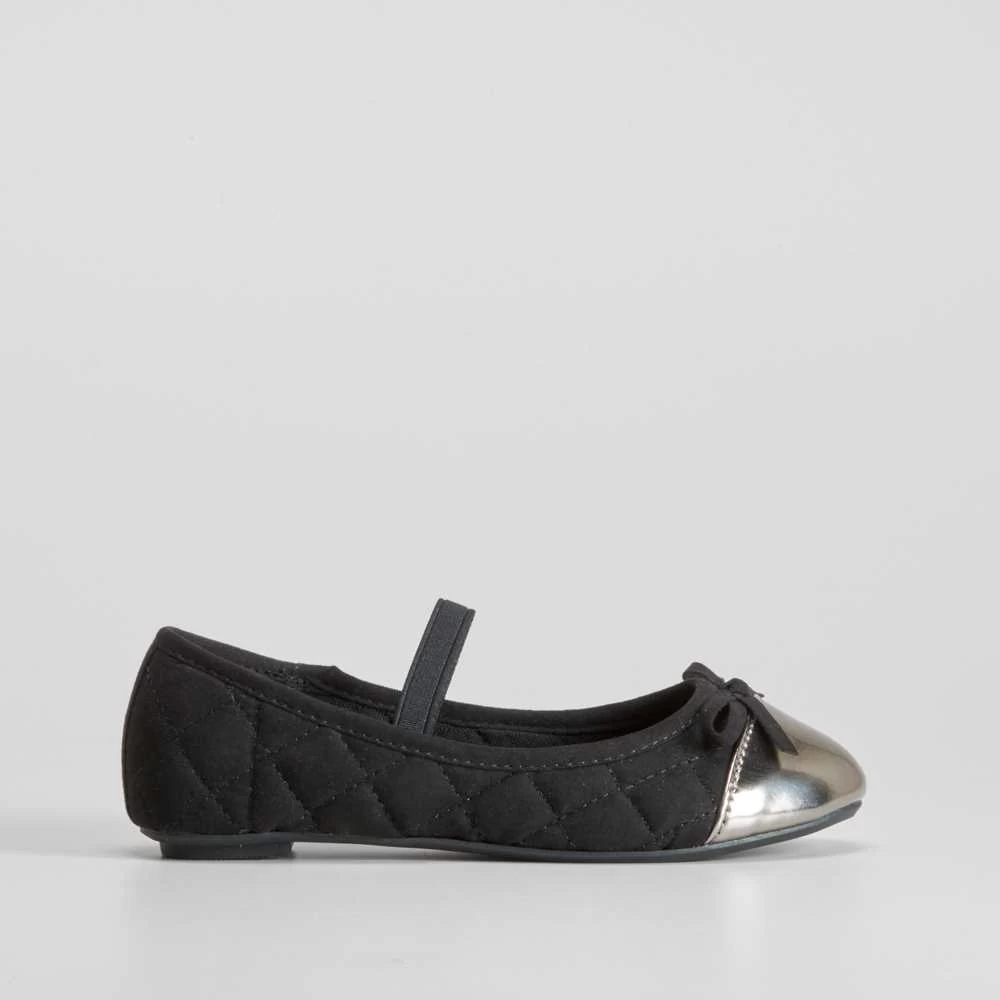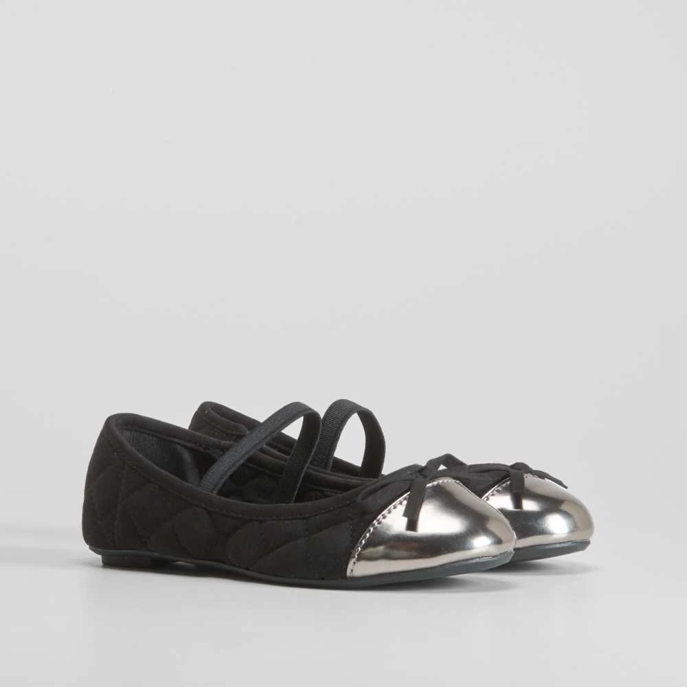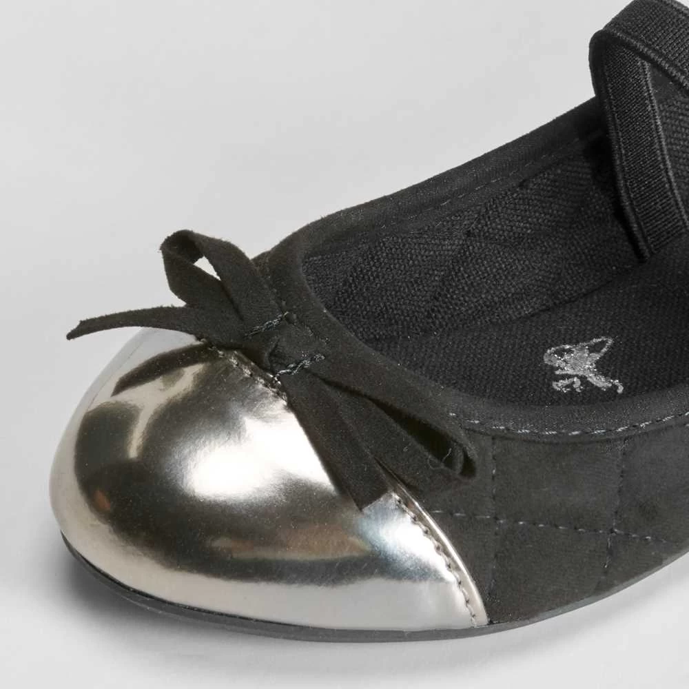 Bailarina negra de OH GIRL para niñas con puntera metalizada. Tira elástica en el empeine para una mayor sujeción y lazo de adorno.