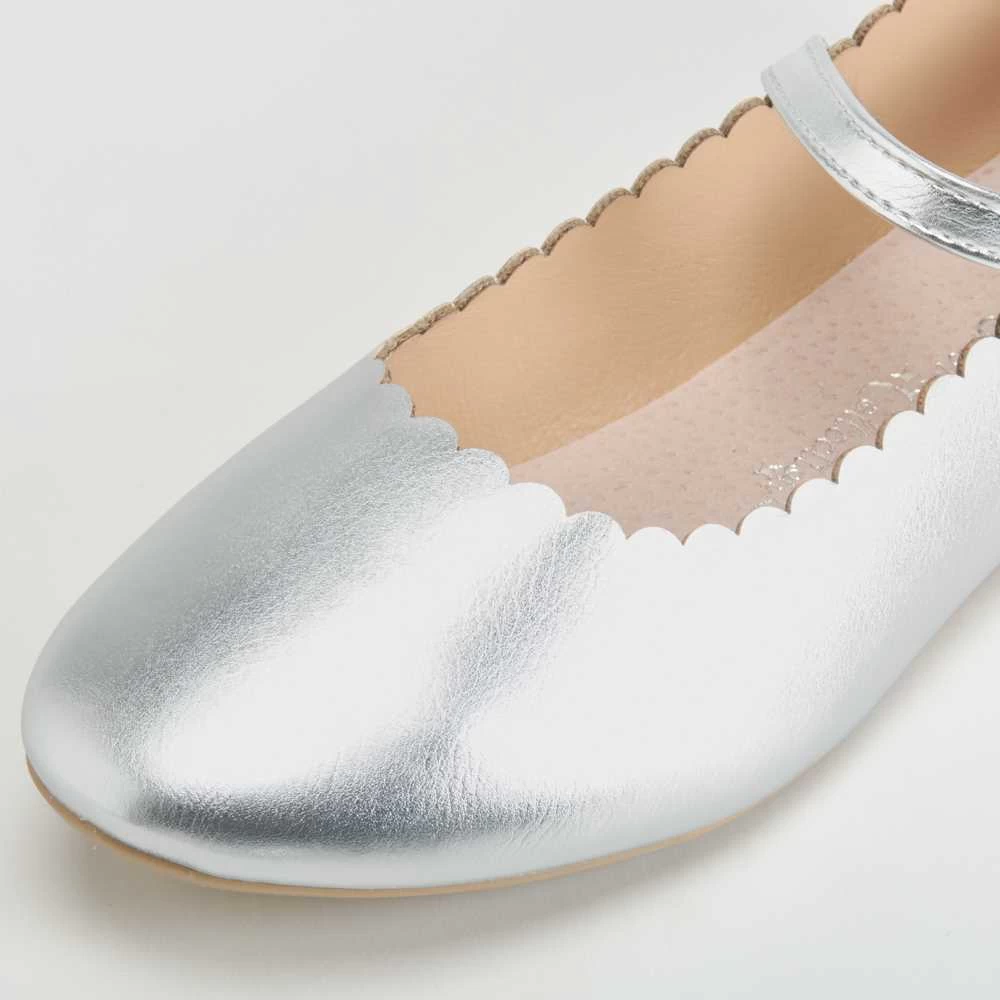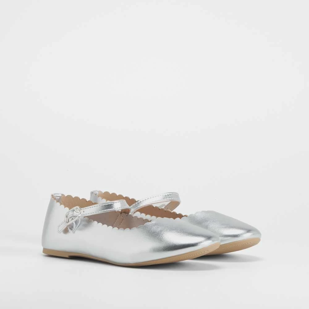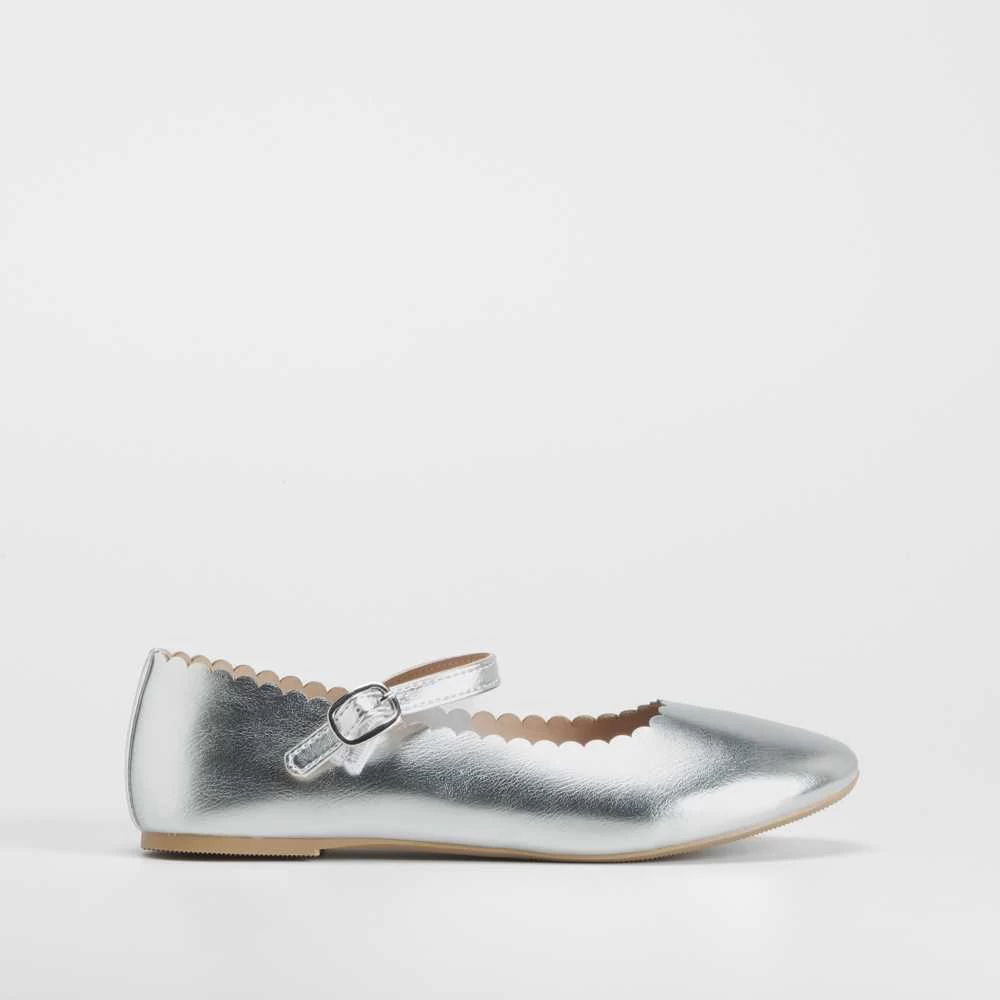 Bailarina infantil metalizada de la marca OH GIRL. Modelo plateado con una tira con hebilla en el empeine para una mayor sujeción.