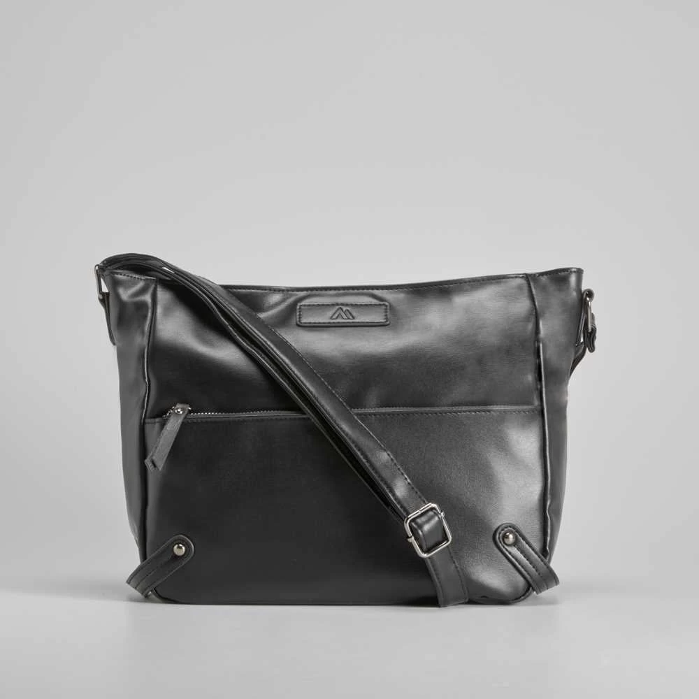 Bolso bandolera con doble compartimento de la marca SENDA ROAD en color negro. Cierre de cremallera y asa ajustable.