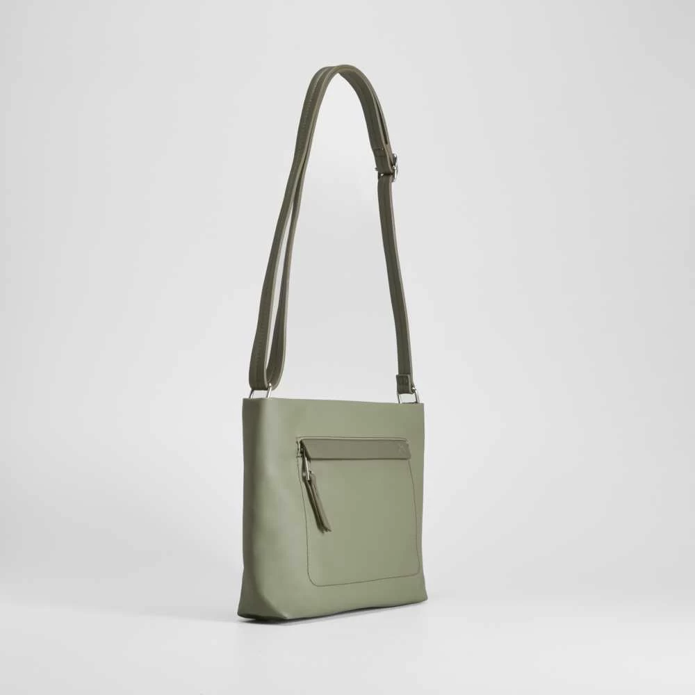 Bolso bandolera impermeable de SENDA ROAD en color kaki con bolsillo delantero y compartimento principal con cierre de cremallera. Asa ajustable.