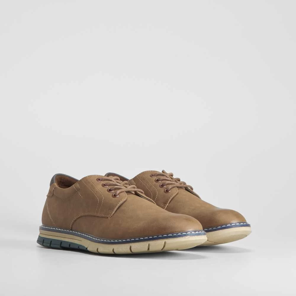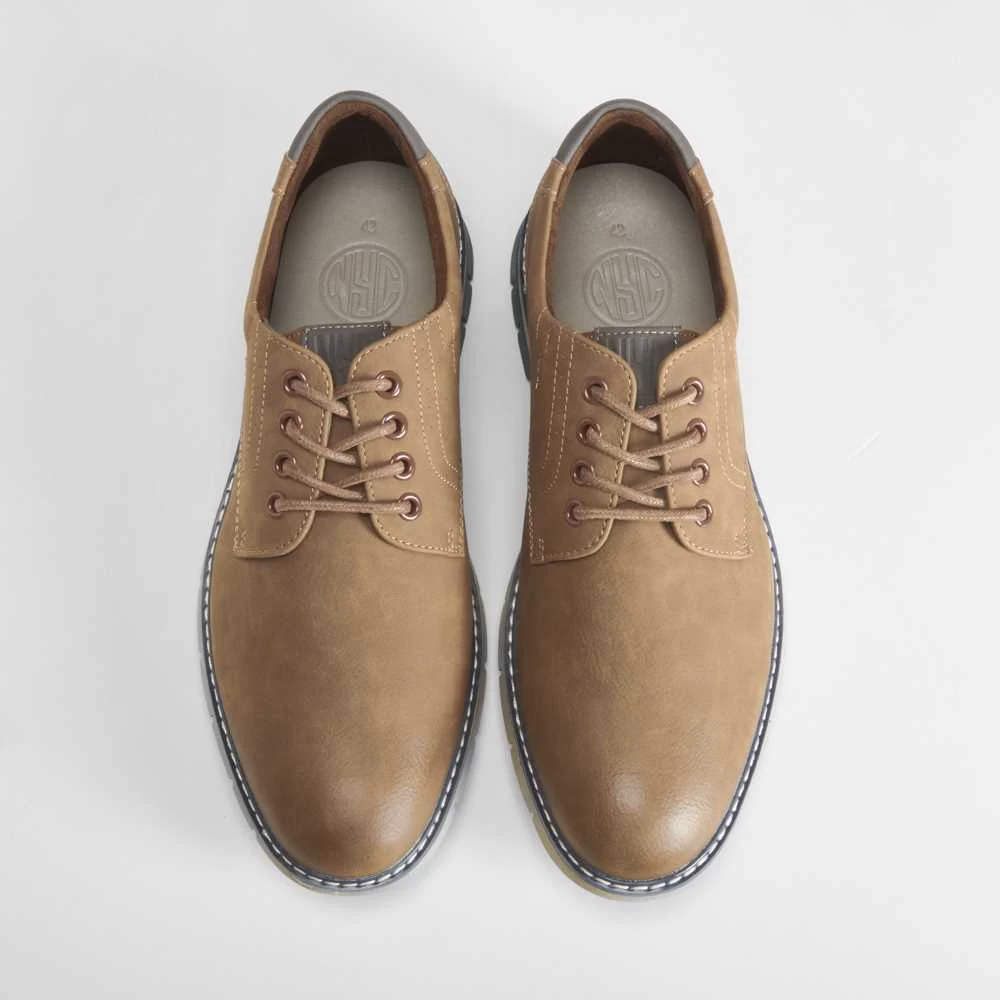 Zapato blucher básico de estilo casual de la marca NYC. Modelo en color beige con cordones combinados y suela bicolor.