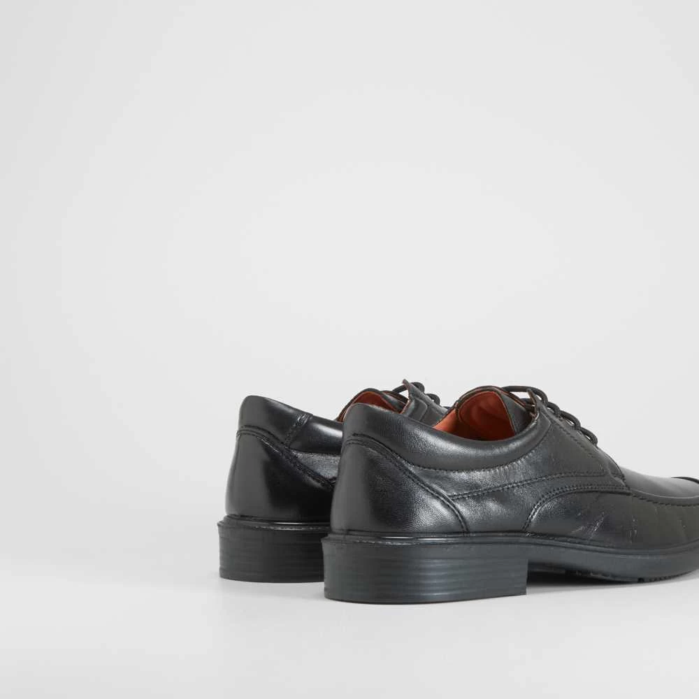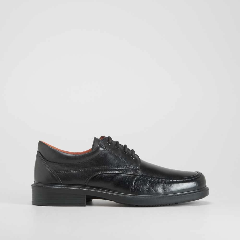 Zapato blucher vestidor de la marca LUISETTI diseñado para el confort de tus pies. Corte de piel en color negro con cordones para un ajuste perfecto del contorno del pie. Plantilla de ancho especial muy agradable.
