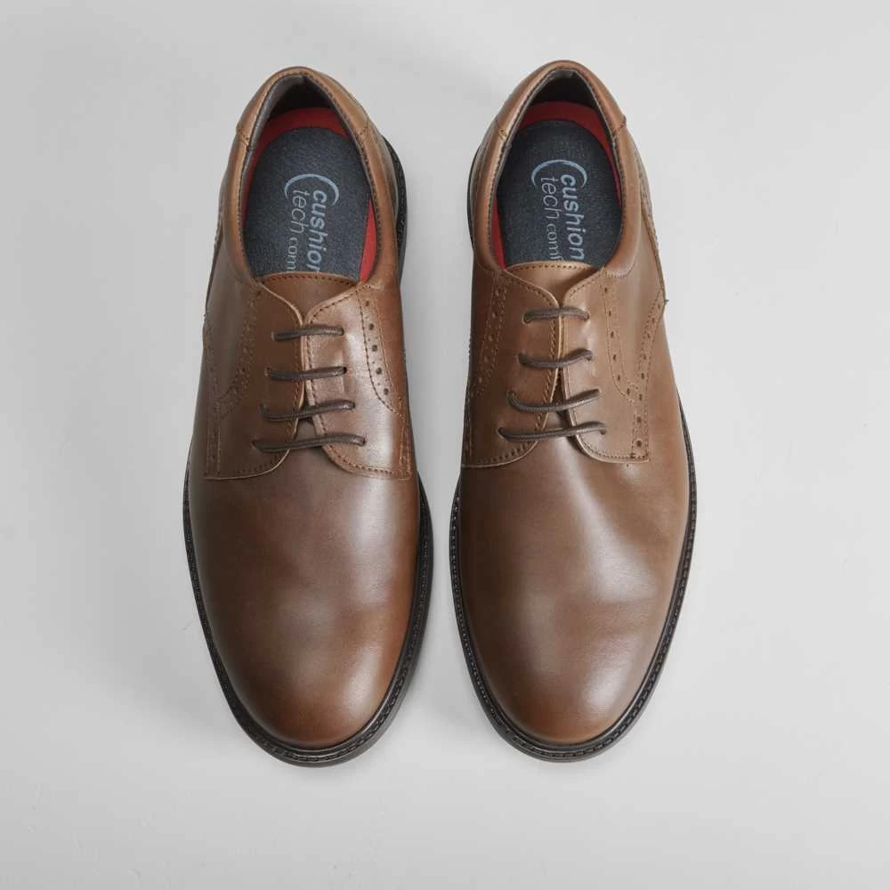Zapato blucher de la marca COMFEET con un diseño confortable y funcional. Modelo en color marrón con cordones y picados de adorno. Tecnología Cushion Tech: Plantilla de poliuretano que se adapta al pie y proporciona una mayor sensación al caminar. Descansa sobre sus estrías de flexión que facilitan la torsión del pie. Recupera su forma habitual lo que permite una mayor amortiguación.