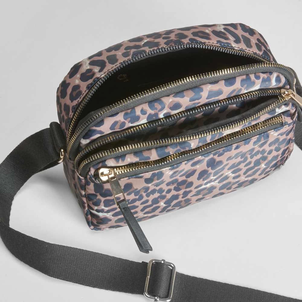 Bolso bandolera de la marca PICCOLA PIU. Modelo con estampado de leopardo con triple cremallera. Bolsillo interior con cierre de cremallera y bolsillo de solapa. Asa plana ajustable. Medidas: 21x7x15cm
