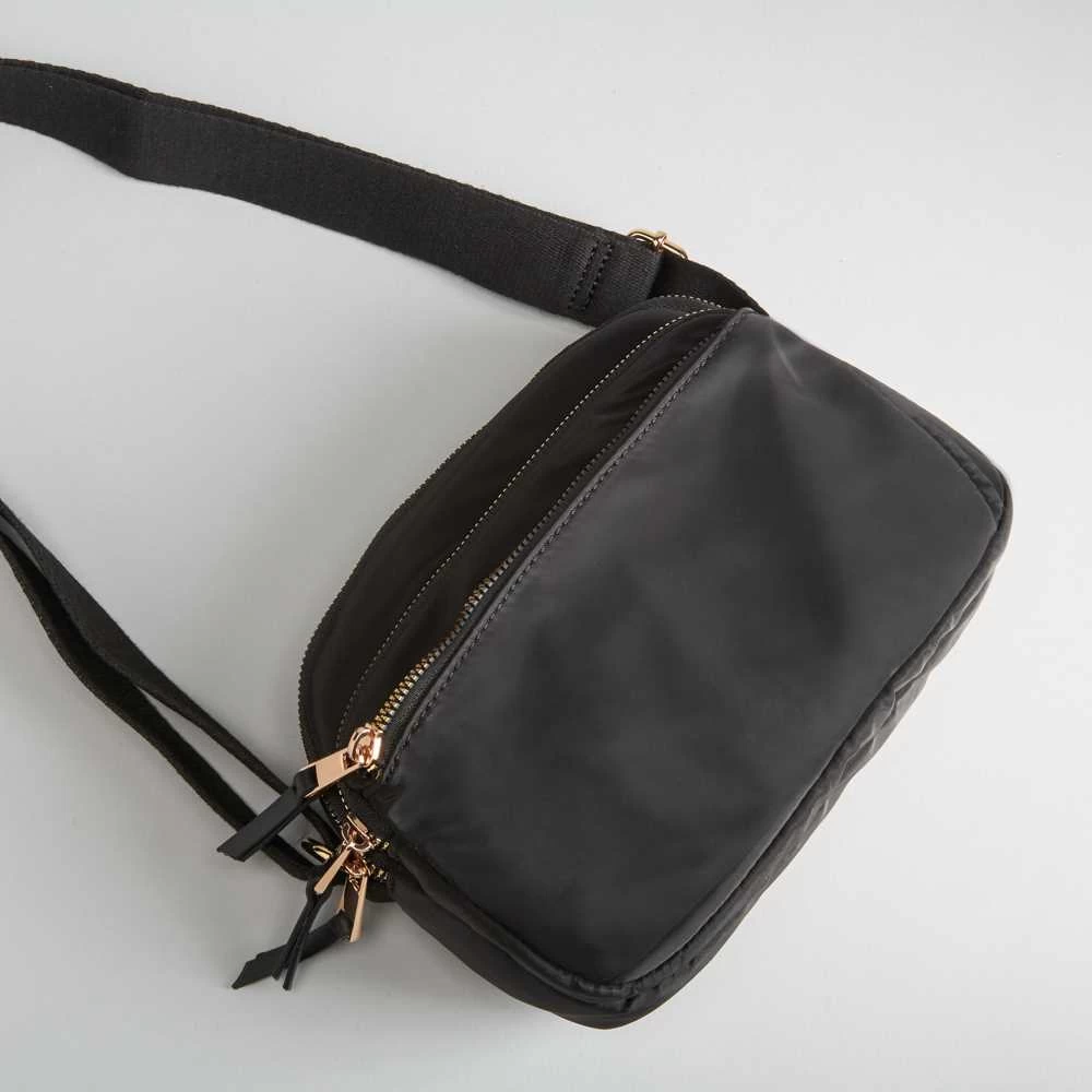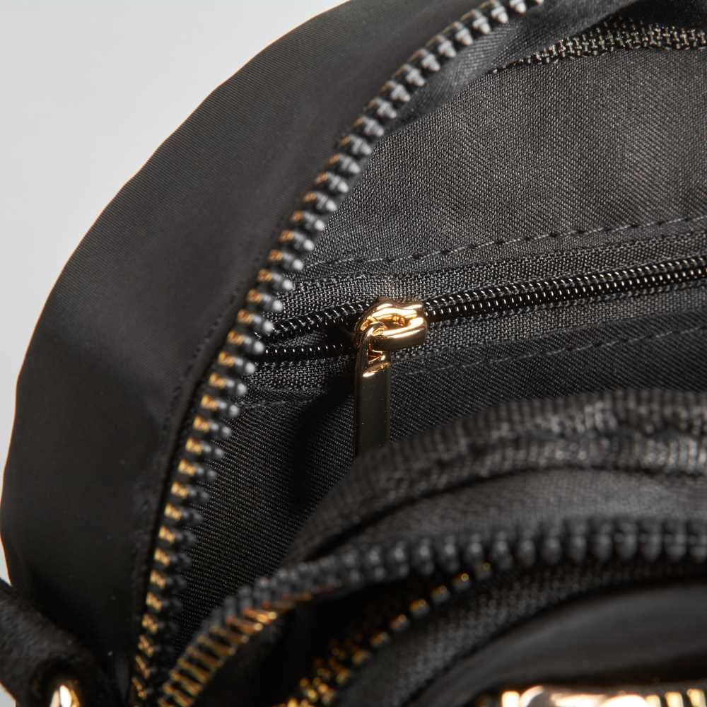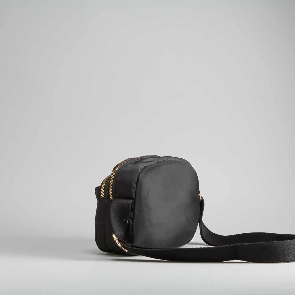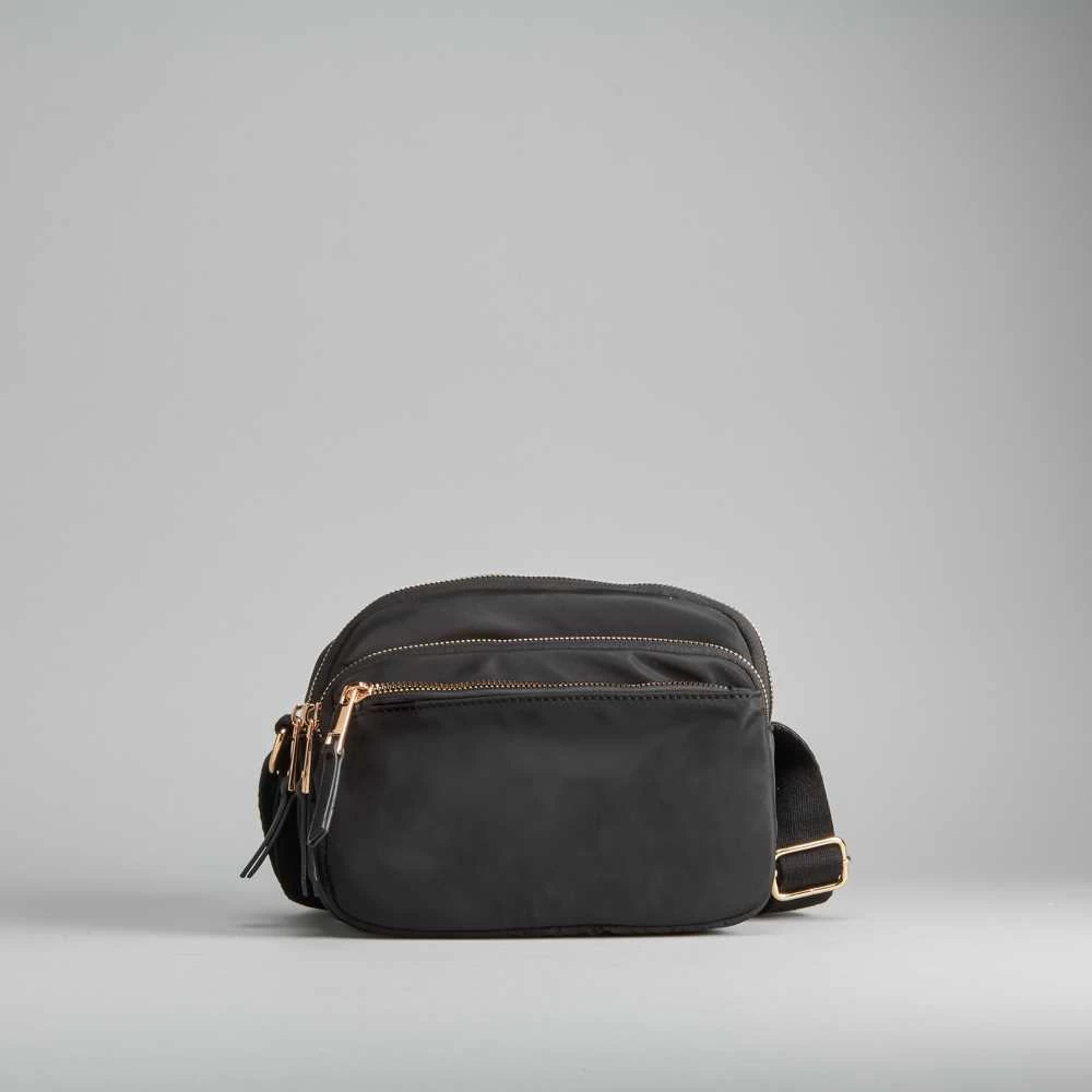 Bolso bandolera de la marca PICCOLA PIU. Modelo en color negro con triple cremallera. Bolsillo interior con cierre de cremallera y bolsillo de solapa. Asa plana ajustable. Medidas: 21x7x15cm.