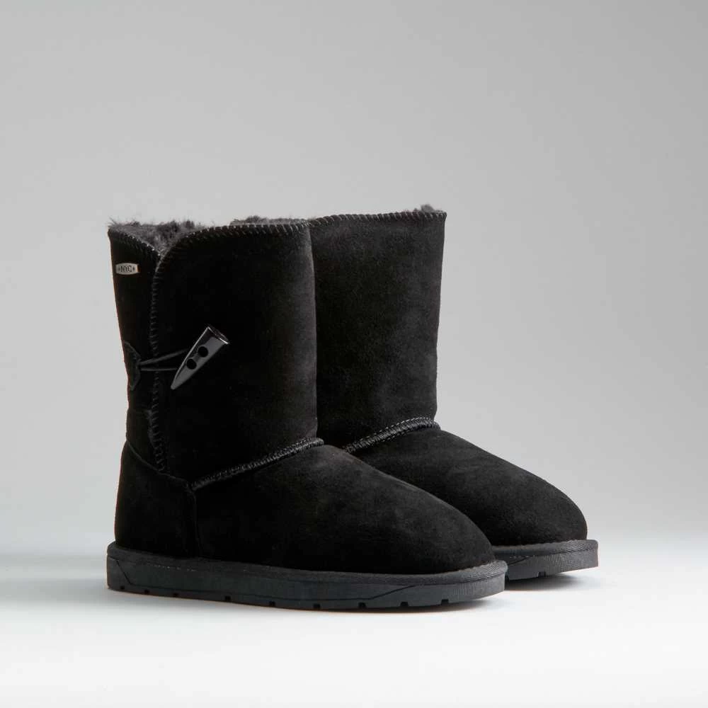 Bota forrada inspirada en las clásicas australianas de la marca NYC. El corte es de piel en color gris, camel y negro con un cierre ajustable. COMFORT+ Interior forrado en suave pelo muy cálido para aislar el pie del frío. upx