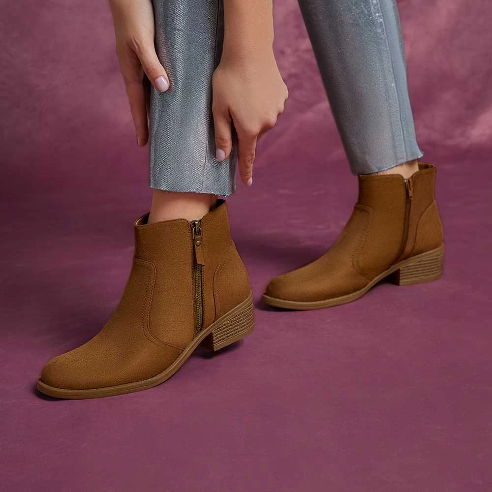 Botín campero básico de PICCOLA PIU en color marrón para mujer. Modelo con cremalleras y tacón bajo de 4cm de altura.