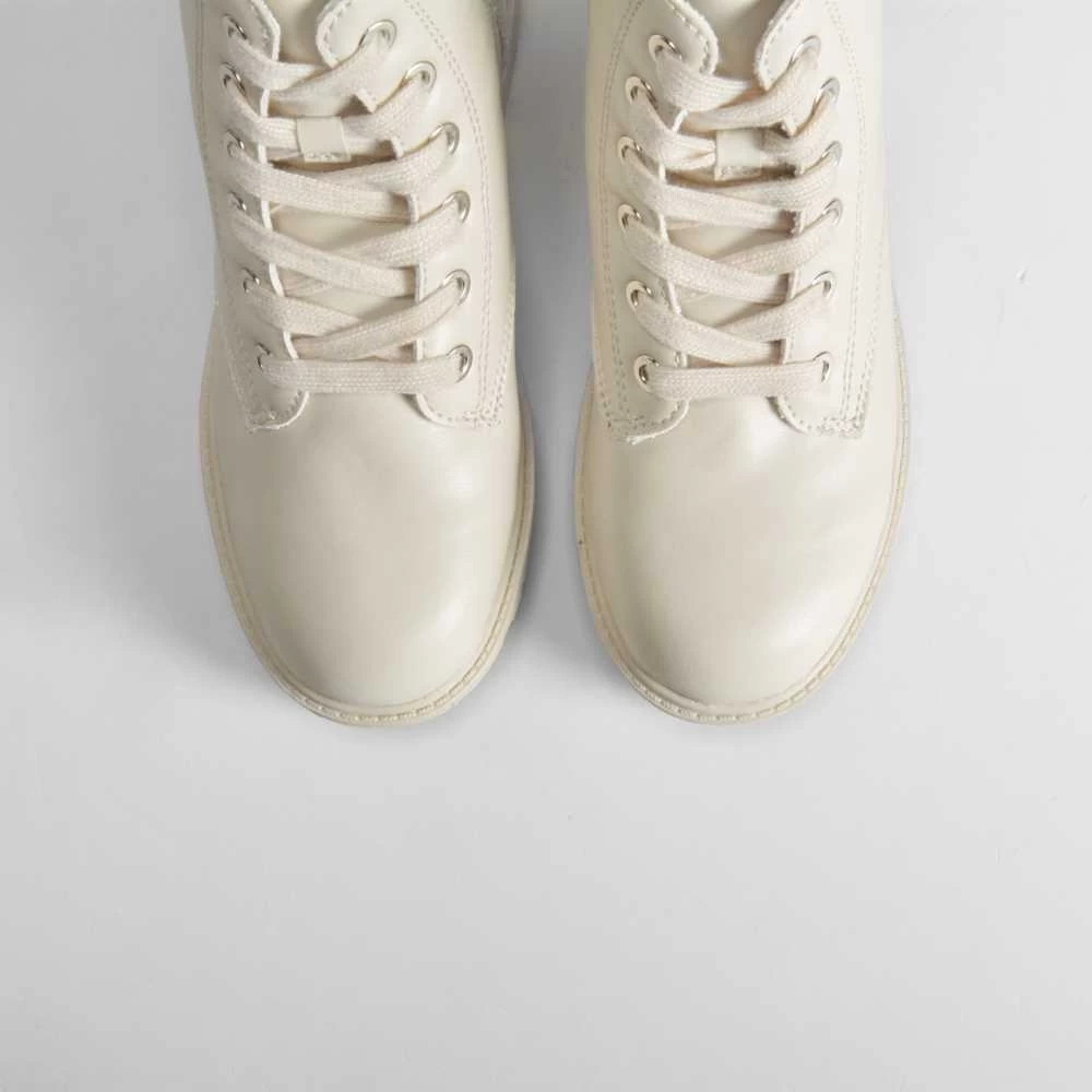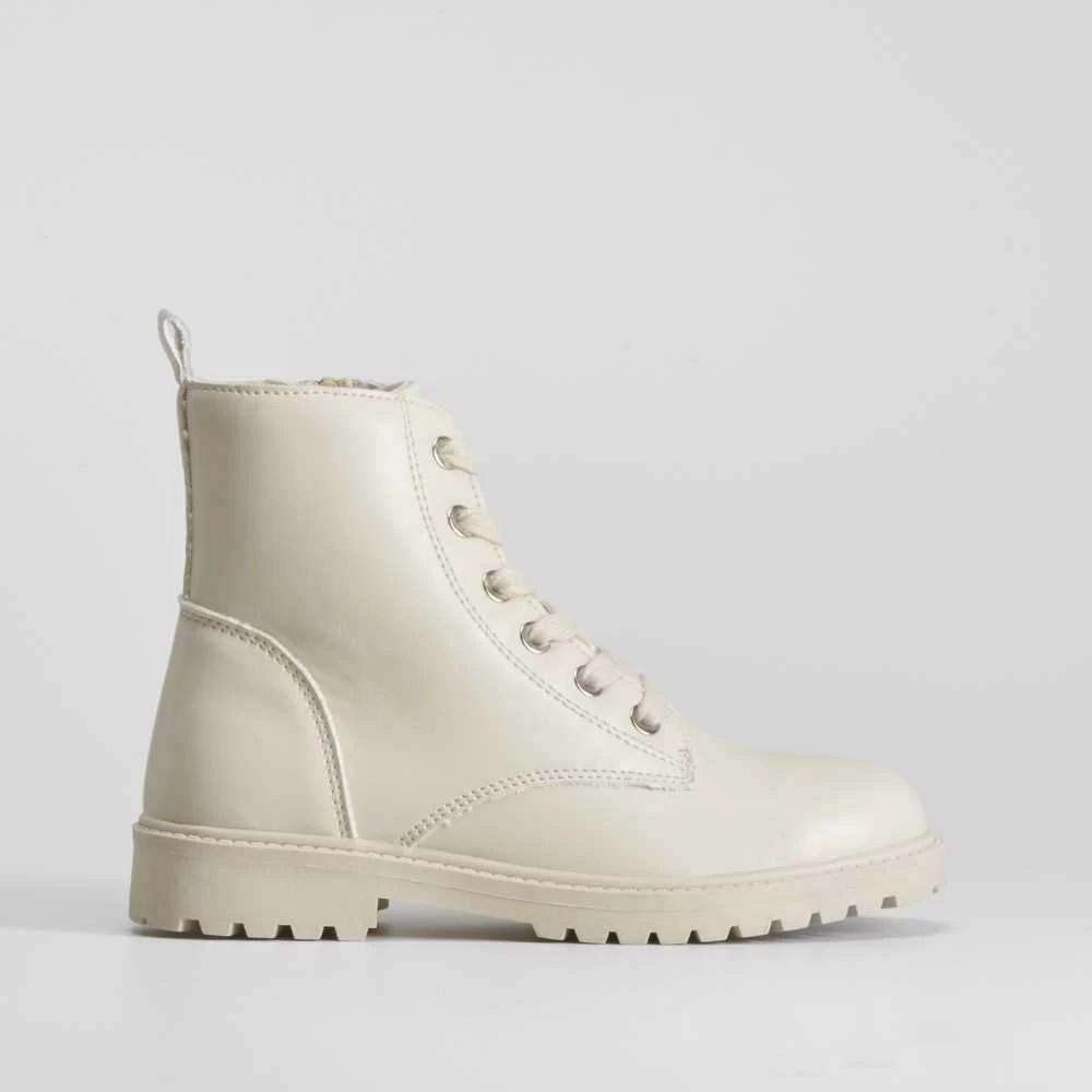 Botín militar básico en color beige de OH GIRL para niñas. Modelo monocolor con cordones y cremallera lateral.