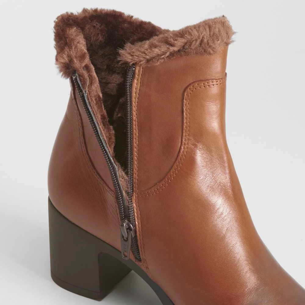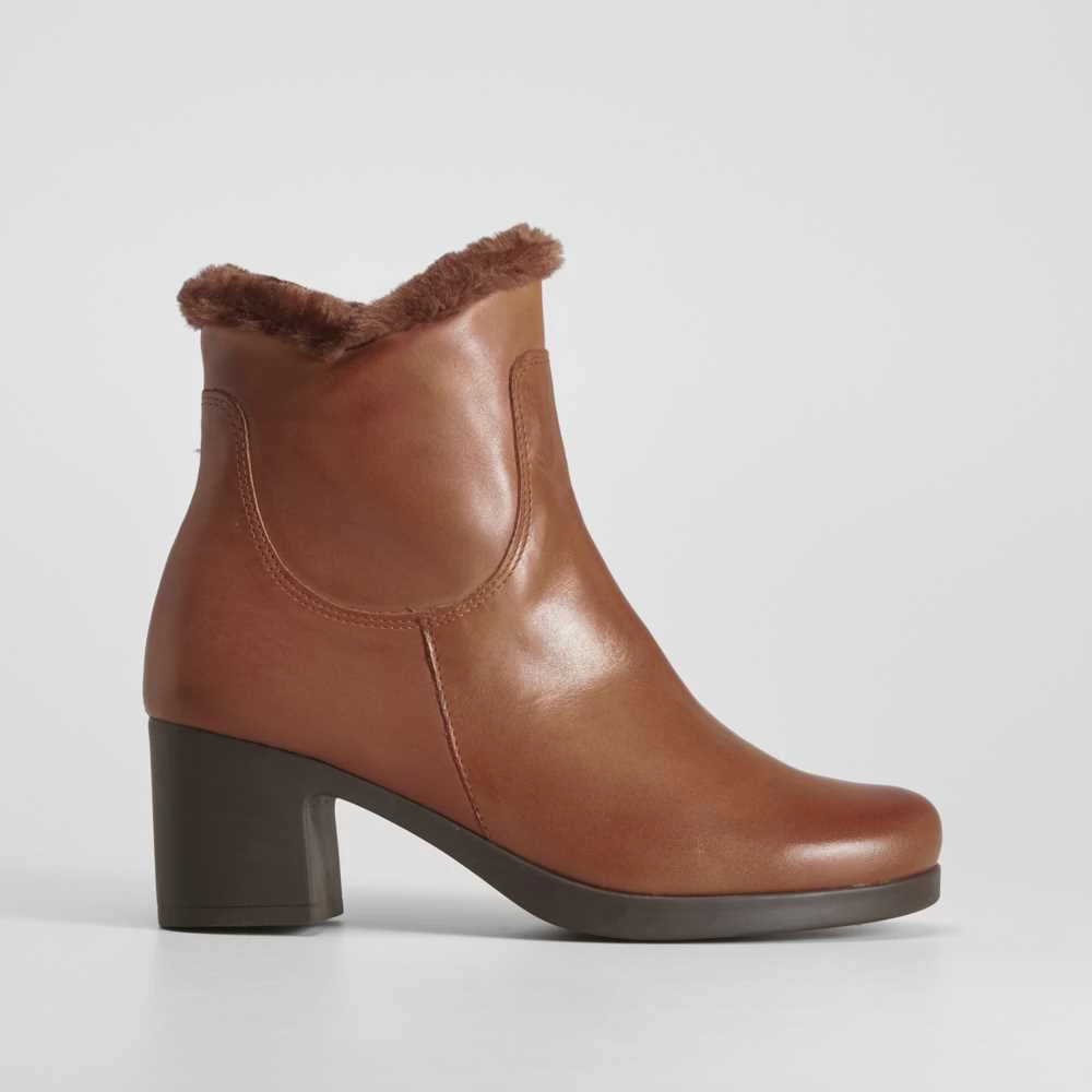Botín de tacón confeccionado en piel de la marca PITILLOS. Modelo en color marrón forrado en pelo y cremallera lateral. Tacón de 4cm de altura. Hecho en España.
