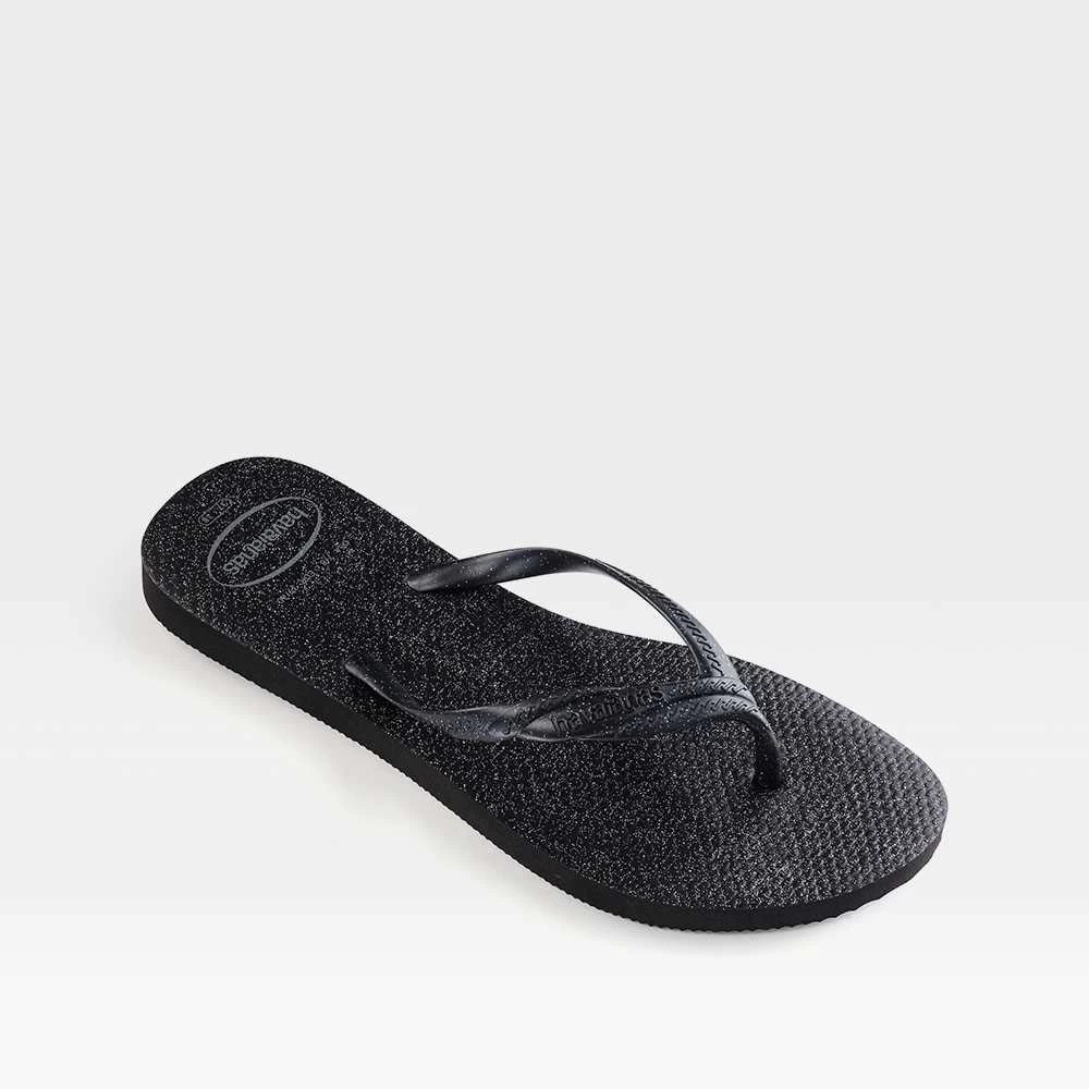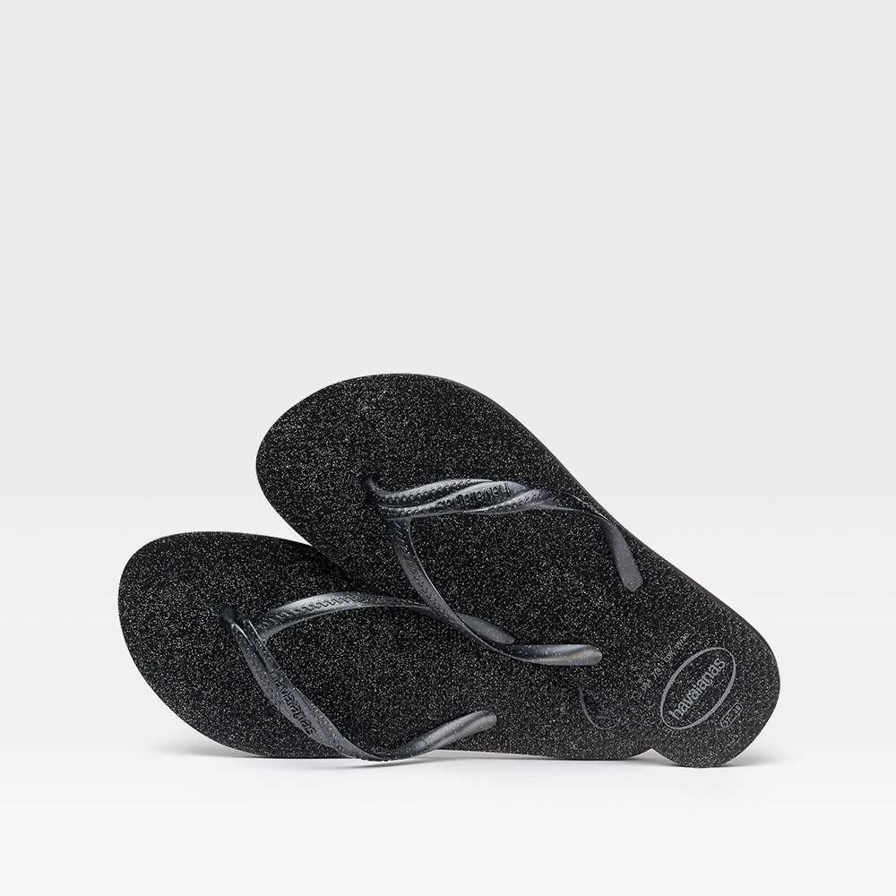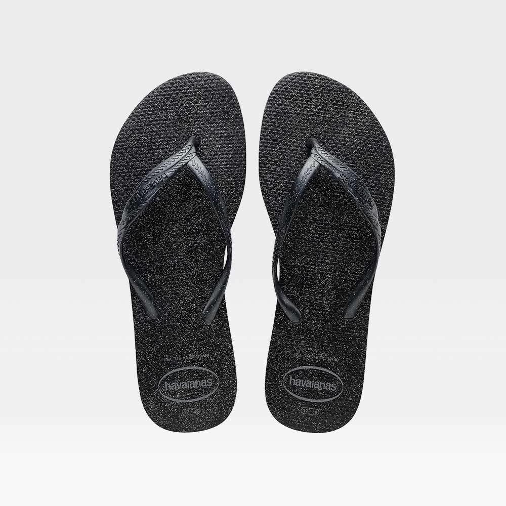 Chancla Slim Trenzado de HAVAIANAS para mujer en color negro. Modelo adornado con brillos.