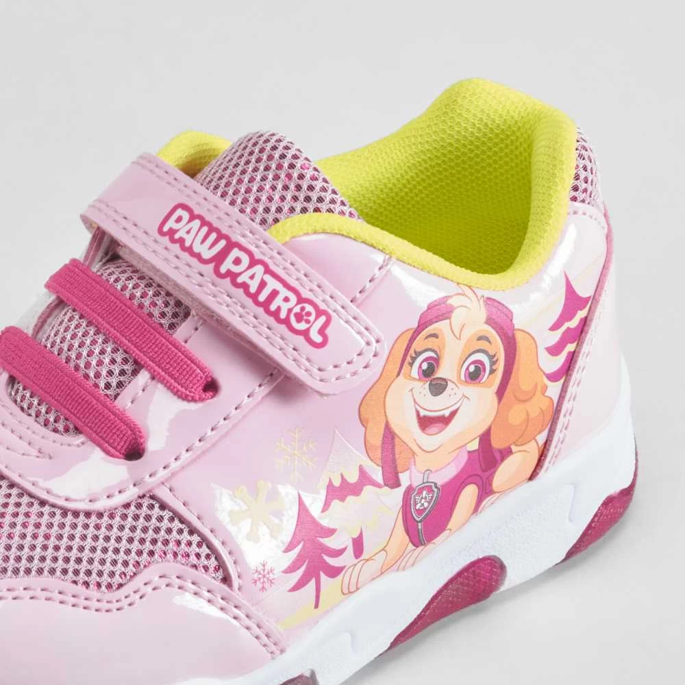 Zapatilla deportiva con luces de la PATRULLA. Cierre de velcro y cordones elásticos.