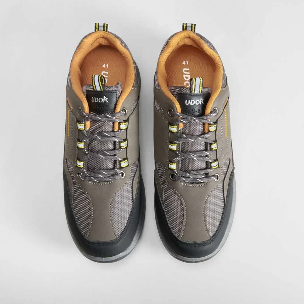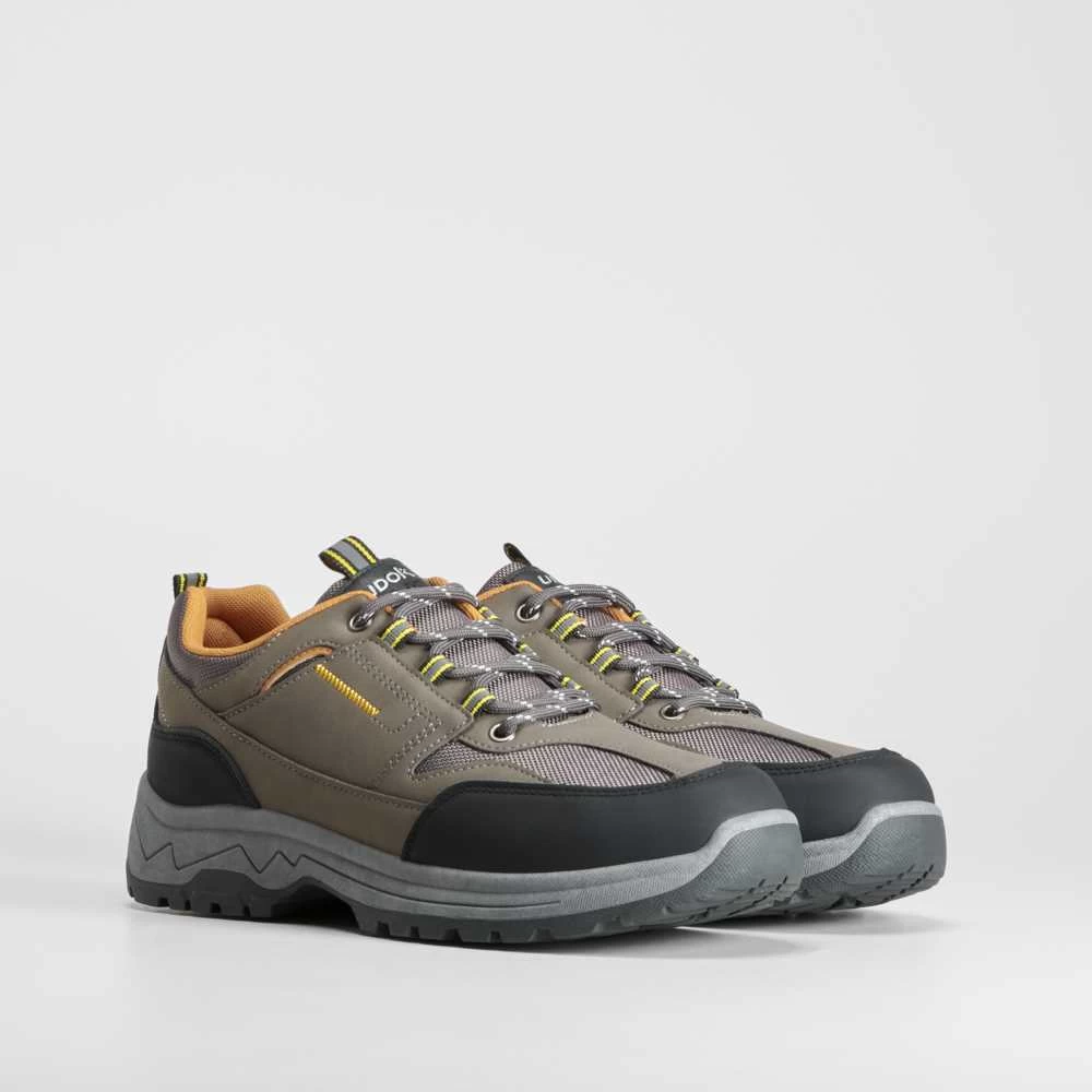 Zapatilla de trekking de UDOK para hombre en color gris con refuerzos en la puntera y el talón y cierre de cordones para un buen ajuste.