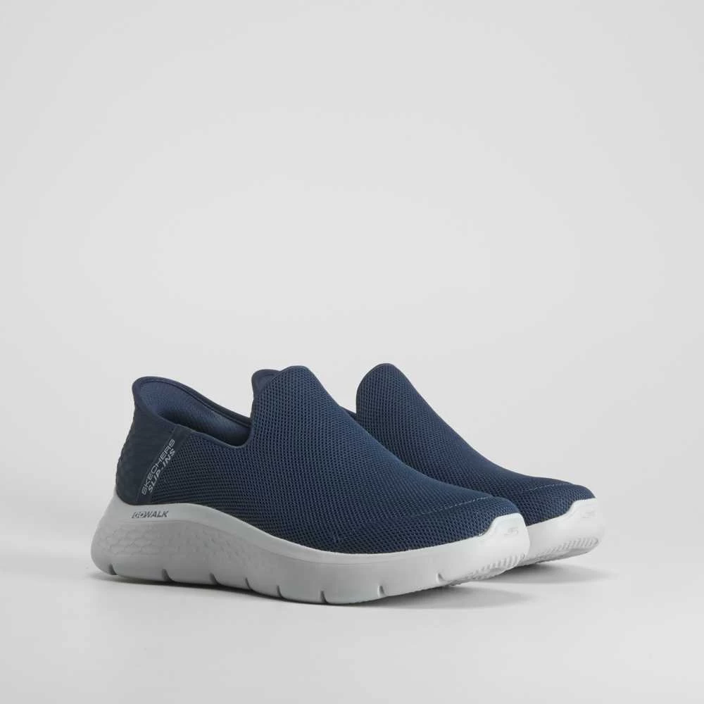 Zapatilla deportiva Slip ins Go Walk Flex de SkECHERS para hombre. Modelo en malla de color azul con un diseño transpirable con elásticos para un calce sencillo. Cómoda plantilla con amortiguación Skechers Air-Cooled Memory Foam. Lavable a maquina.