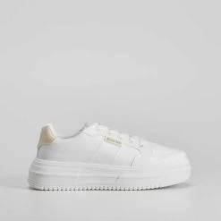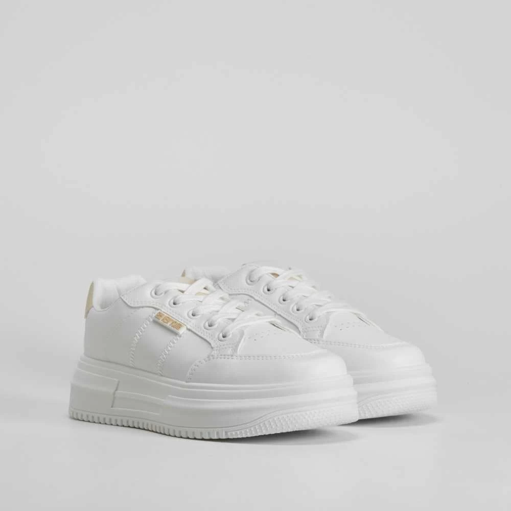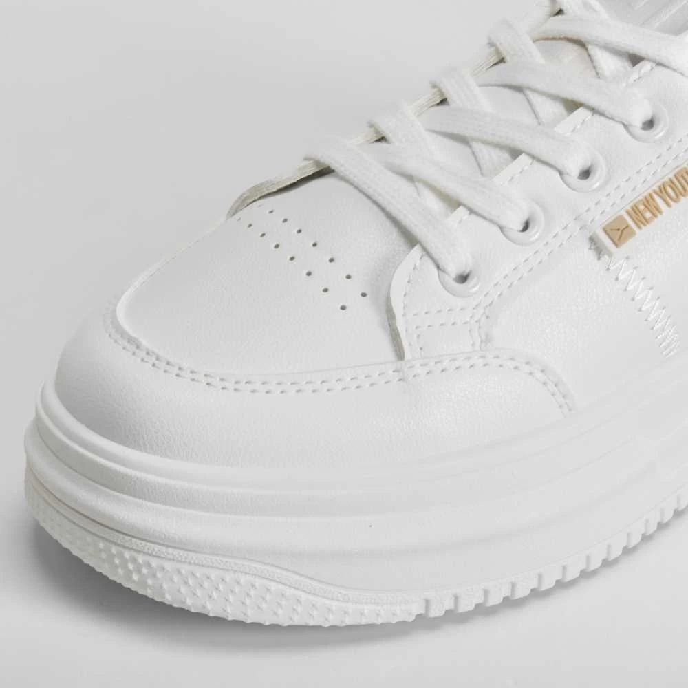 Zapatilla urbana con plataforma en color blanco de la marca NYC. Modelo con cordones y pieza combinada en el talón.