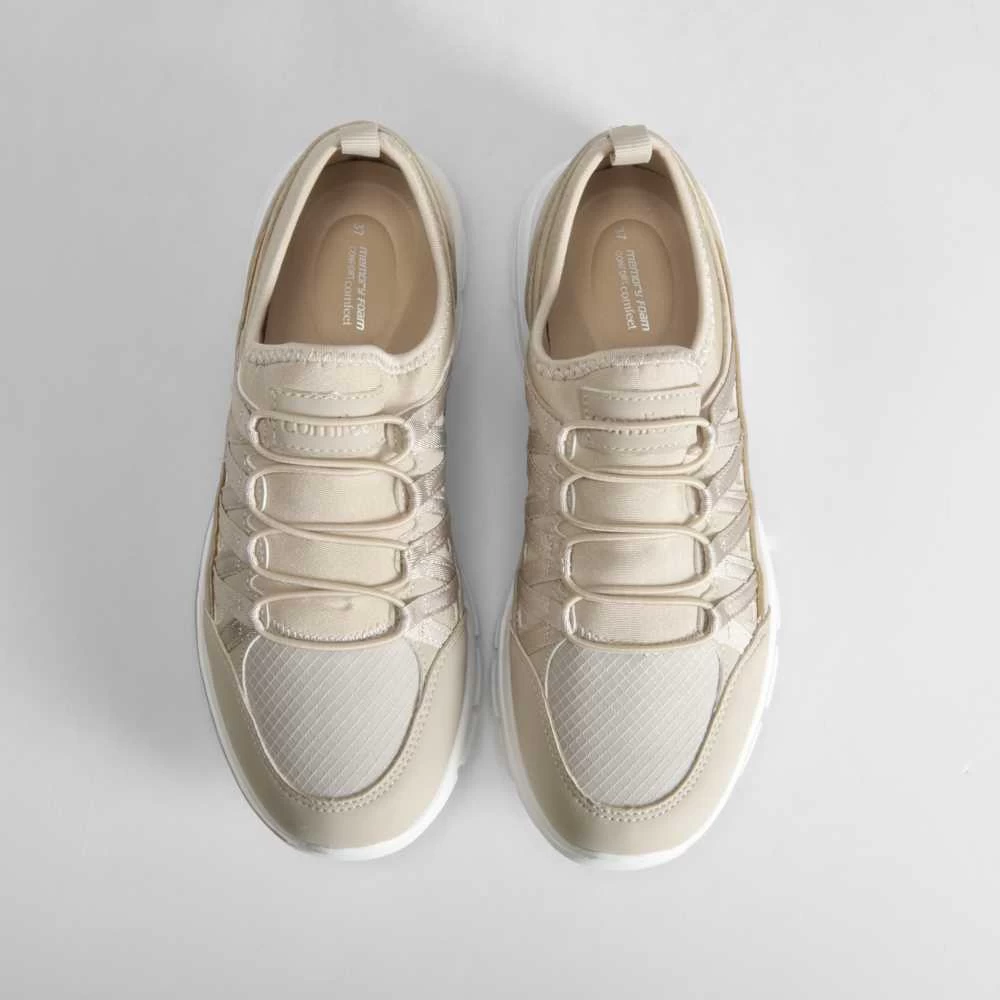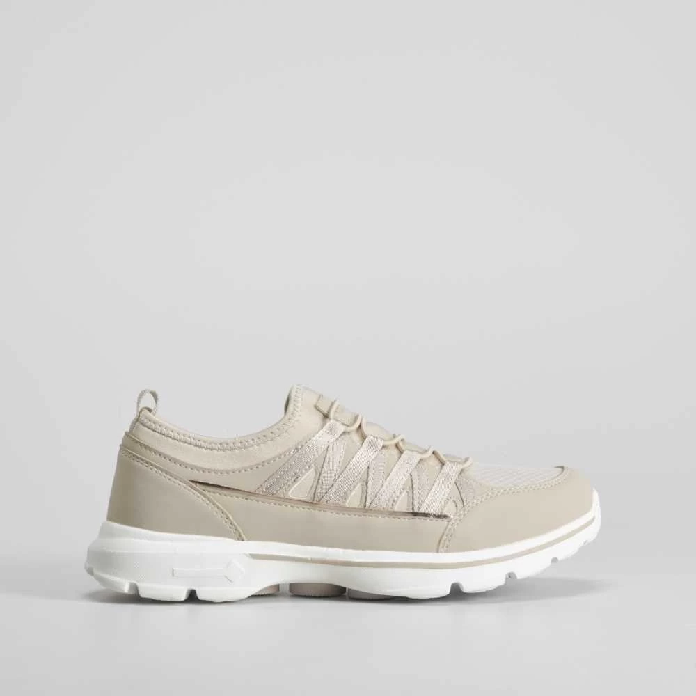 Zapatilla deportiva de COMFEET en color beige para mujer con un diseño ligero y flexible. Cordones elásticos, tirador trasero y acabado en neopreno para un calce sencillo. Plantilla memory Foam que proporciona comodidad y soporte para un máximo confort.