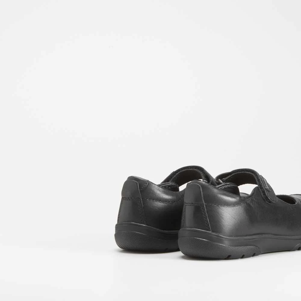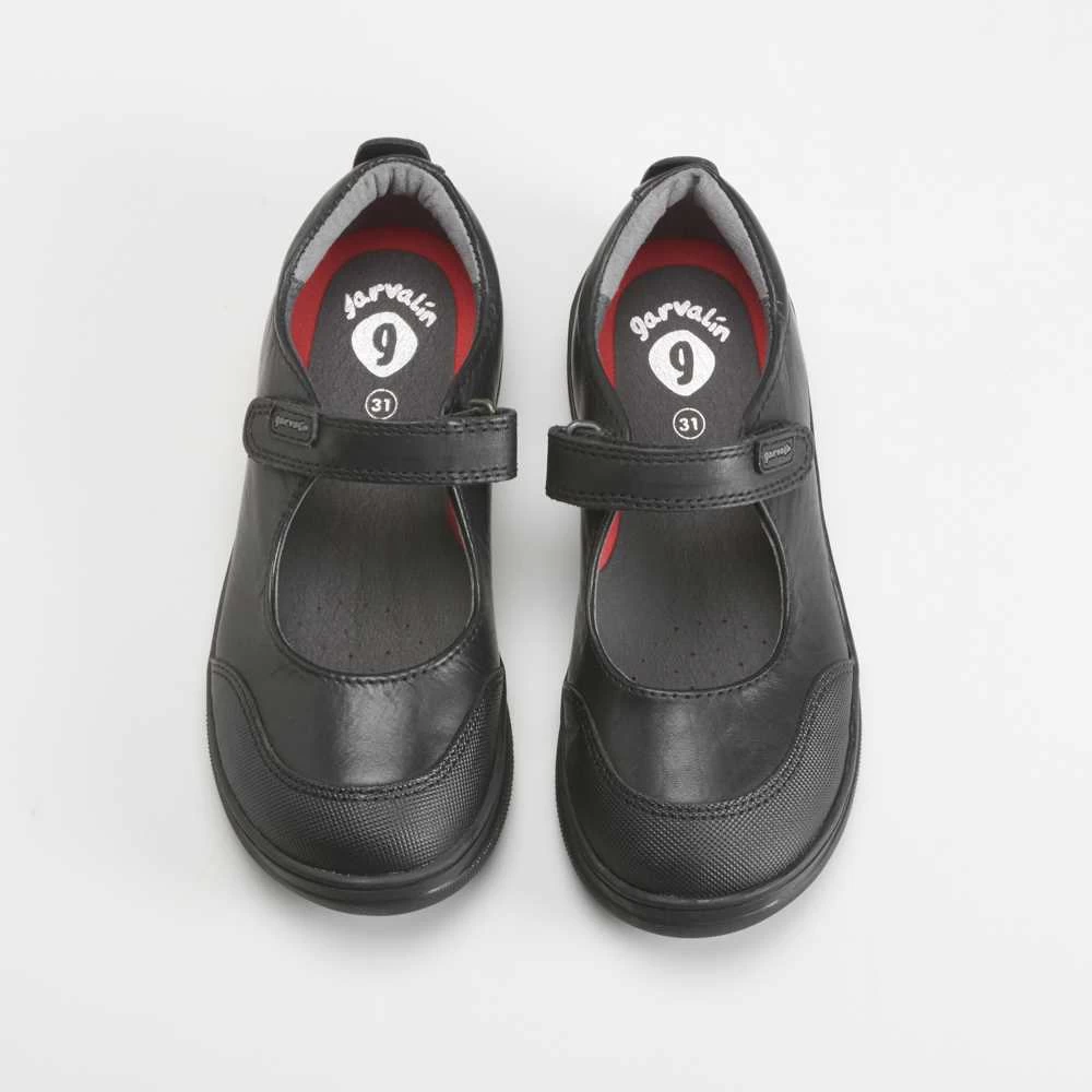 Mercedita colegial de piel de la marca GARVALIN para niñas. Modelo en color negro con una tira de velcro ajustable para un calce más rápido y sencillo. .nil