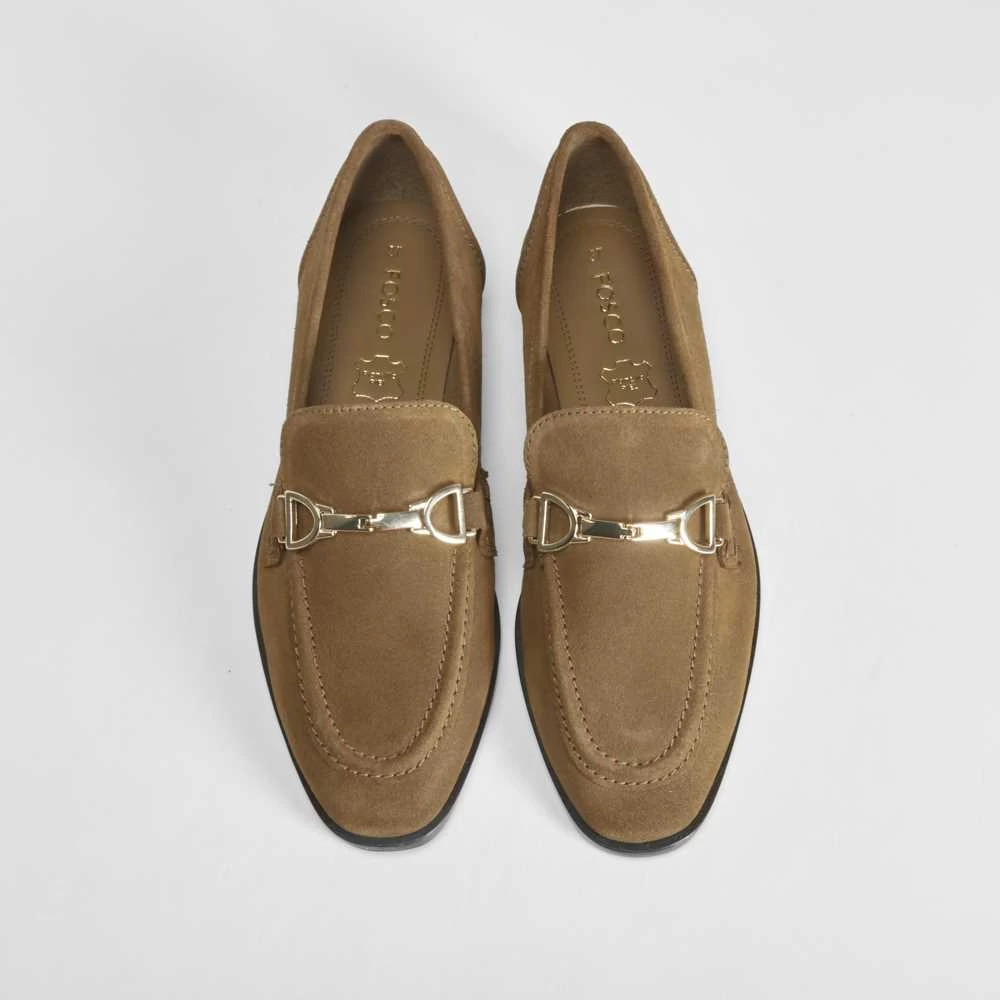 Mocasín plano de piel de la marca FOSCO en color camel con estribo de adorno en el copete.