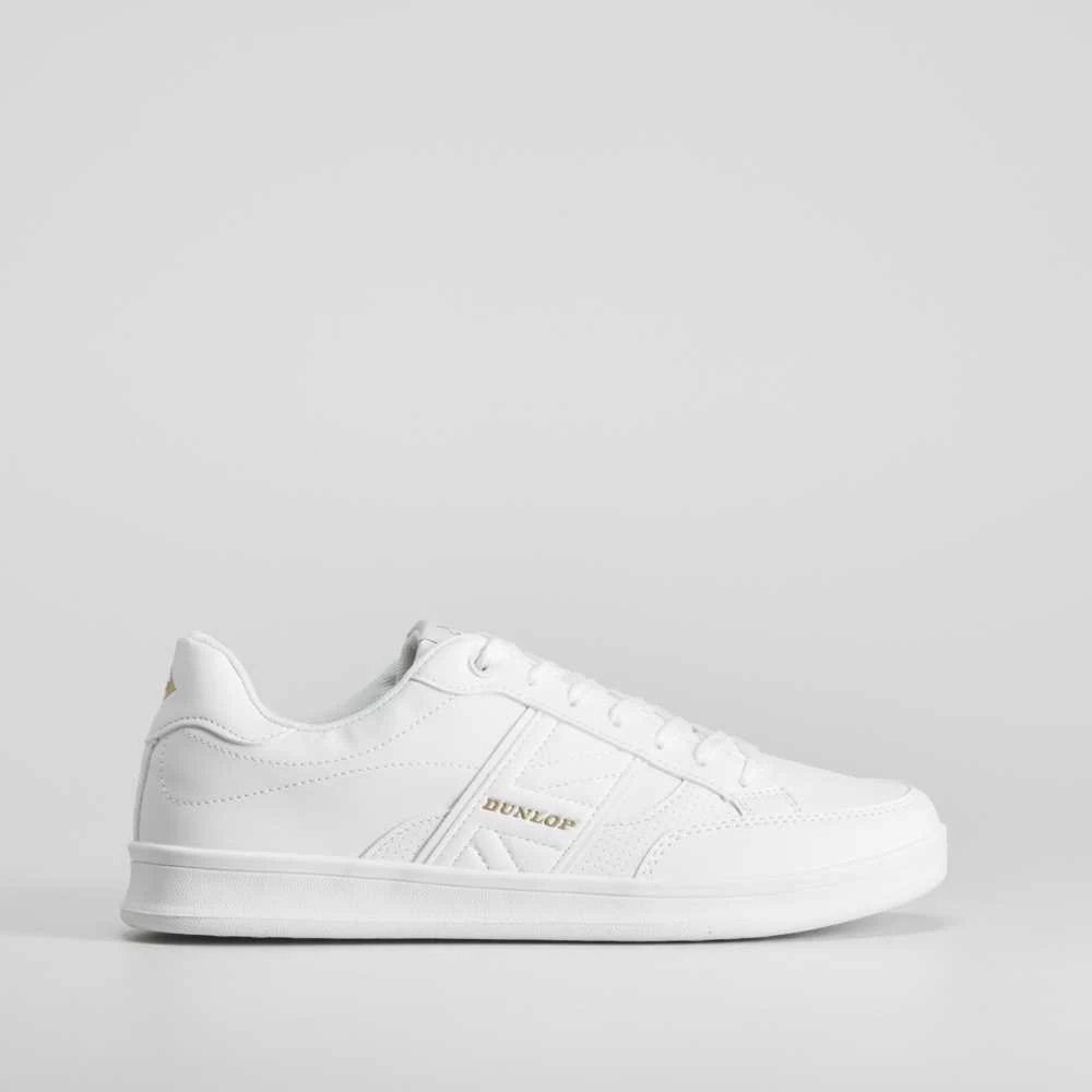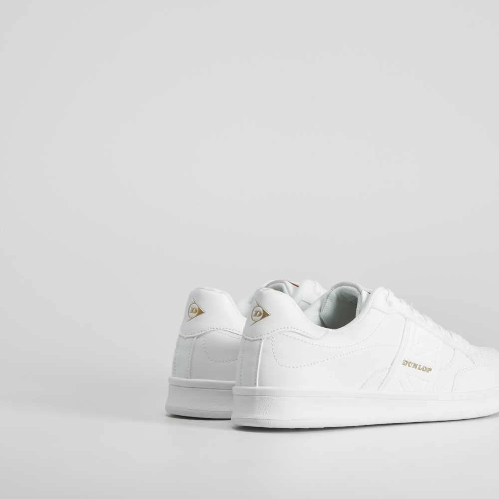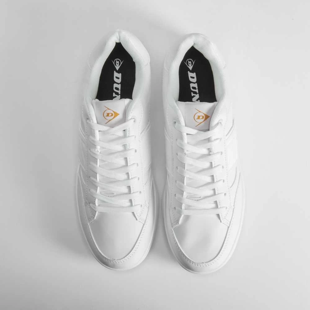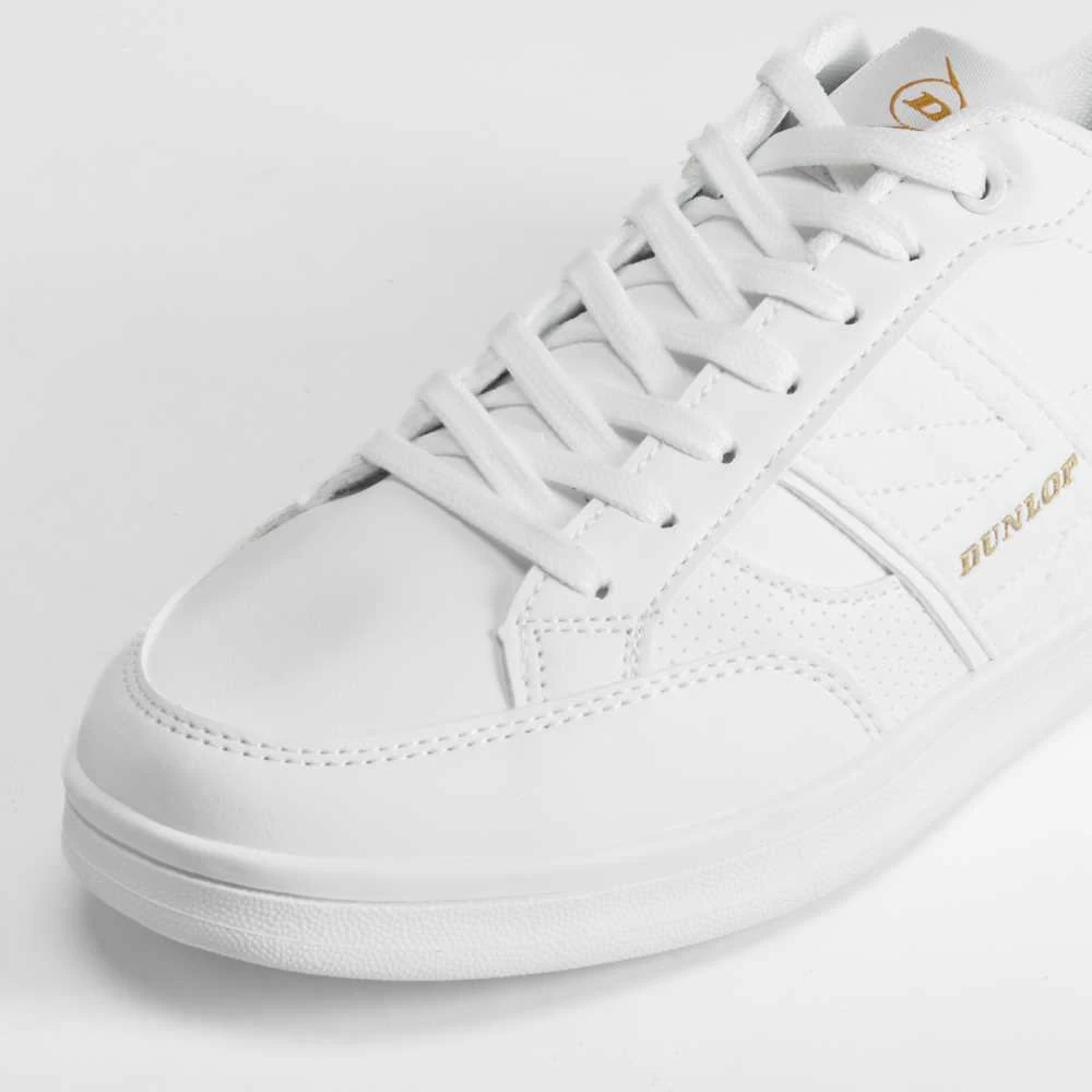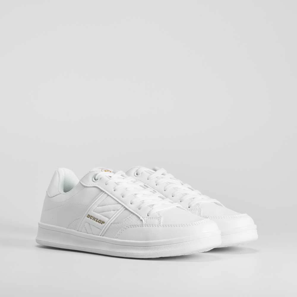 Zapatilla urbana con cordones de DUNLOP para hombre en color blanco. Detalle de cosidos entonados y logo lateral.