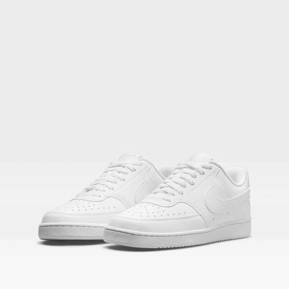 Zapatilla urbana court vision low de la marca NIKE para mujer. Exterior con paneles combinados en color blanco, perforaciones en la puntera y en los laterales para añadir comodidad y transpirabilidad. Cierre de cordones combinados y zona del tobillo acolchada. Suela exterior de goma.