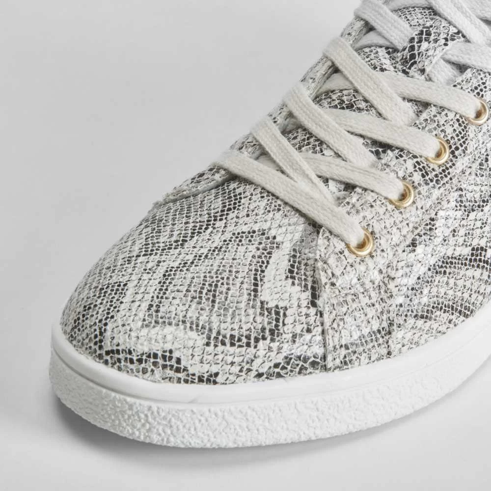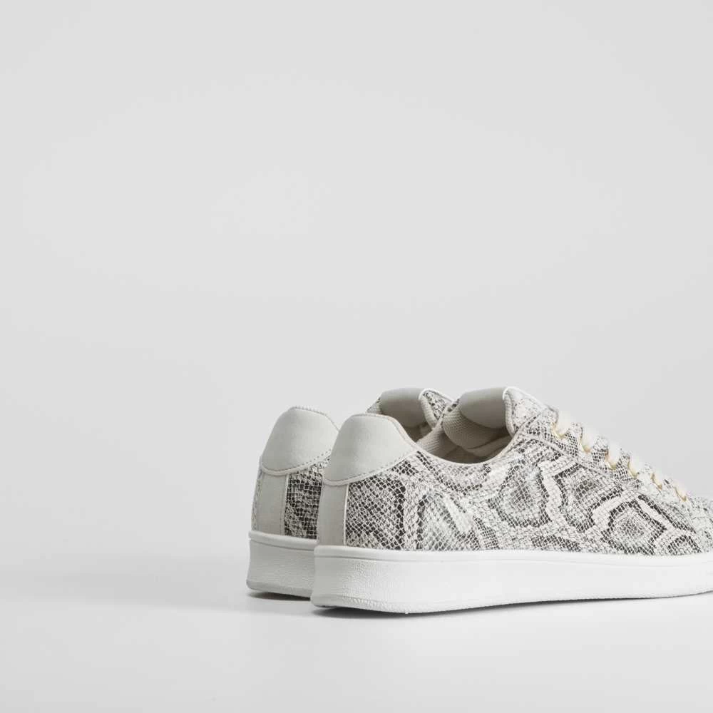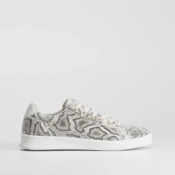 Zapatilla urbana de PICCOLA PIU con un bonito estampado de serpiente en tonos gris. Cierre de cordones con ojales dorados.