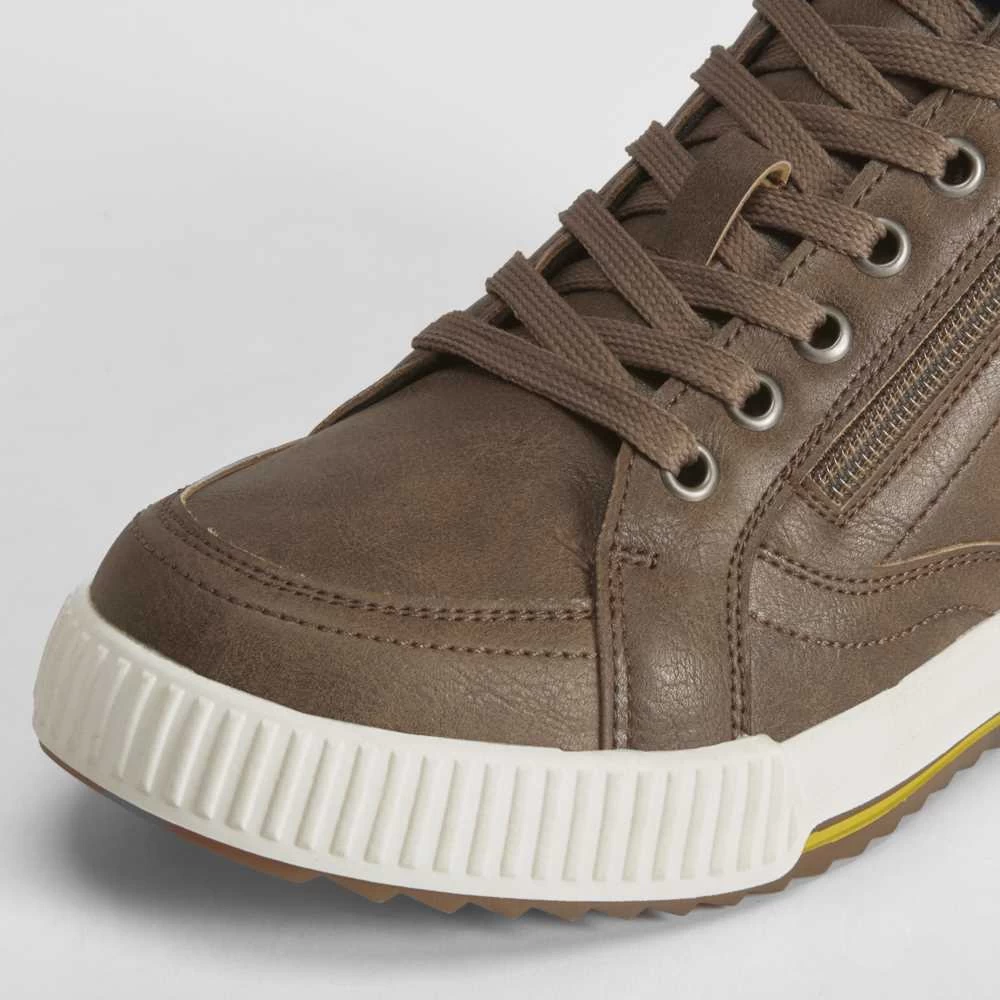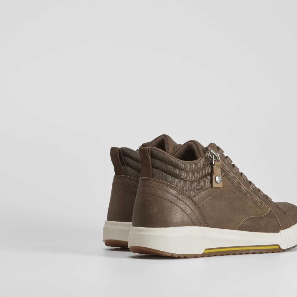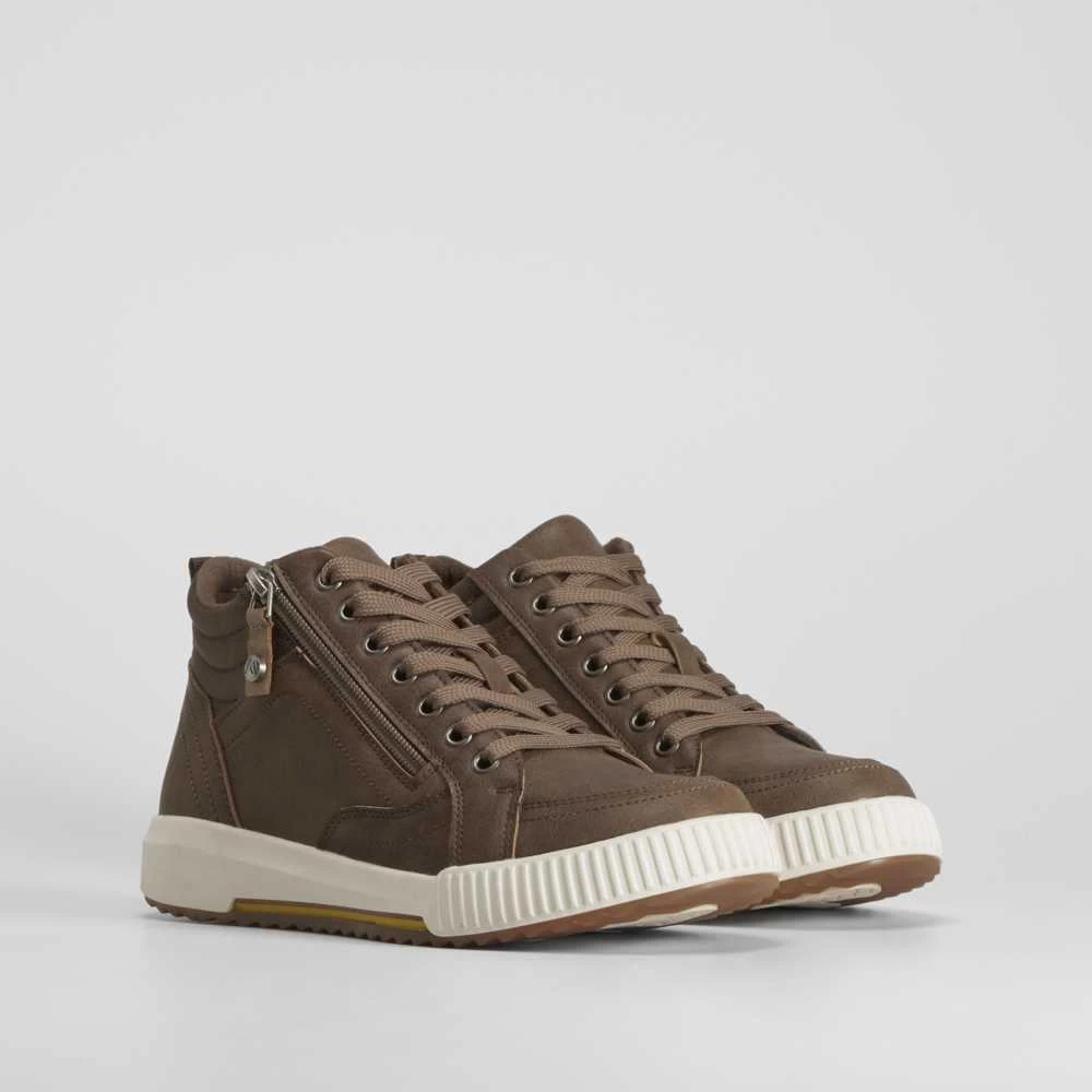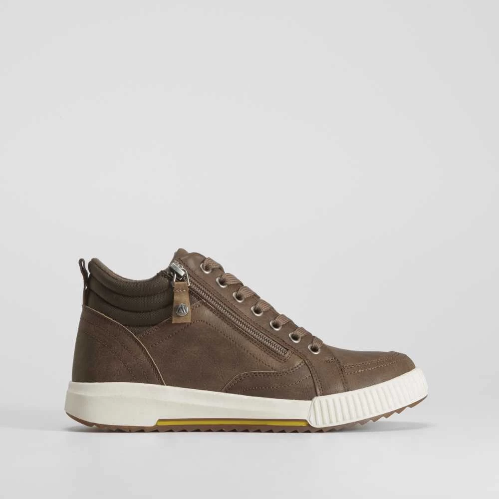 Zapatilla deportiva alta de SENDA ROAD para mujer. Modelo en color taupe con cordones y cremallera lateral. Cuello acolchado.