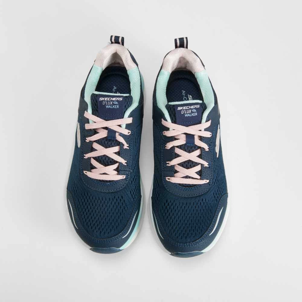 Zapatilla deportiva d lux walker infinite motion de la marca SKECHERS. Exterior de malla con paneles combinados en color azul, cierre de cordones contrastados y suela flexible confortable.