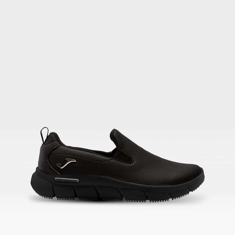 Zapatilla deportiva slip on Laceless de JOMA para mujer. Modelo en malla de color negro con dos elásticos y tirador trasero.