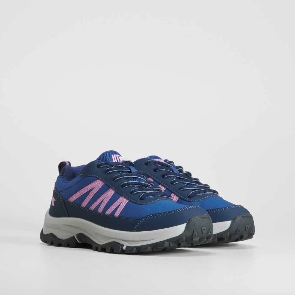 Zapatilla de senderismo de UTWO para mujer en color negro. Cierre de cordones y tiradores para un calce sencillo. Suela robusta y antideslizante.