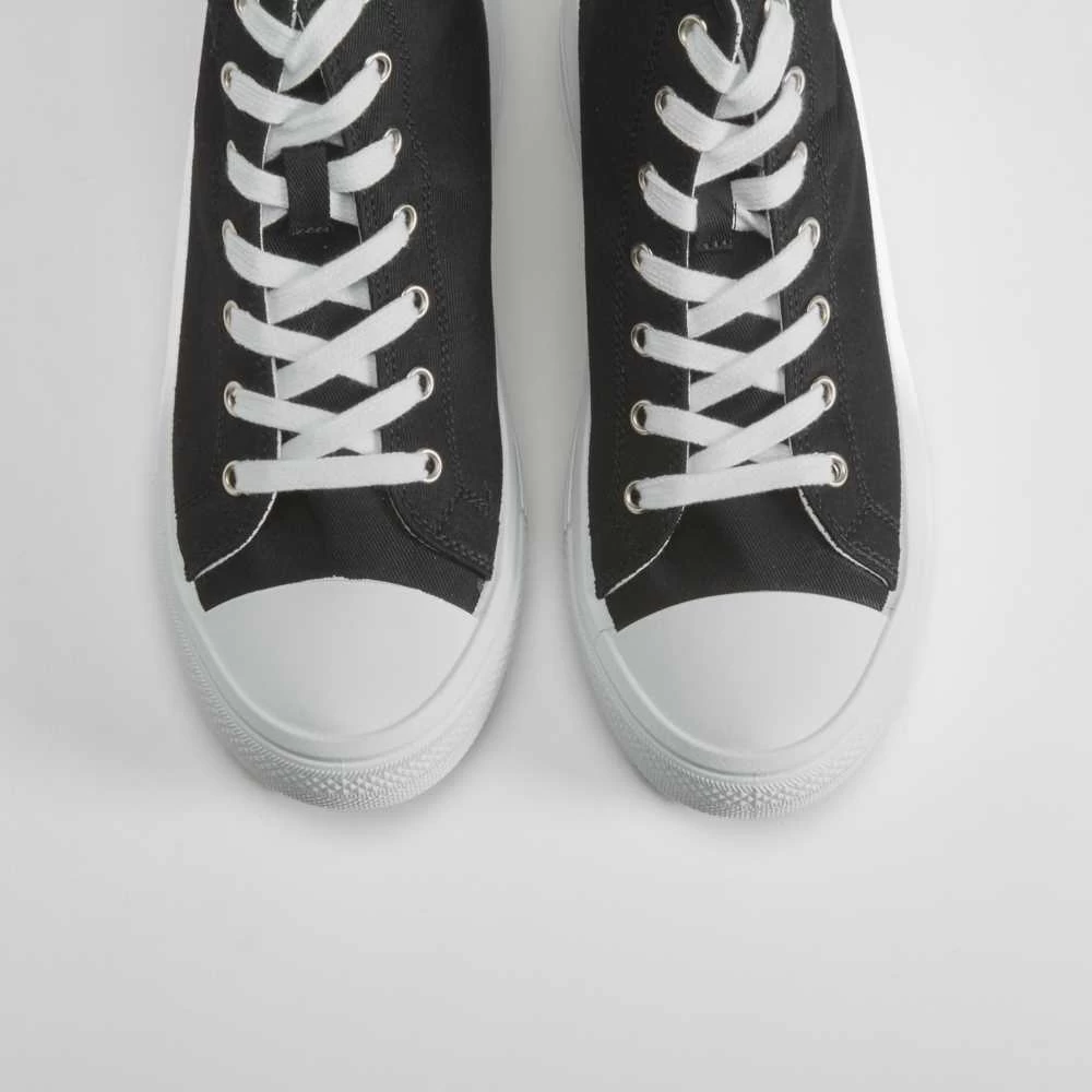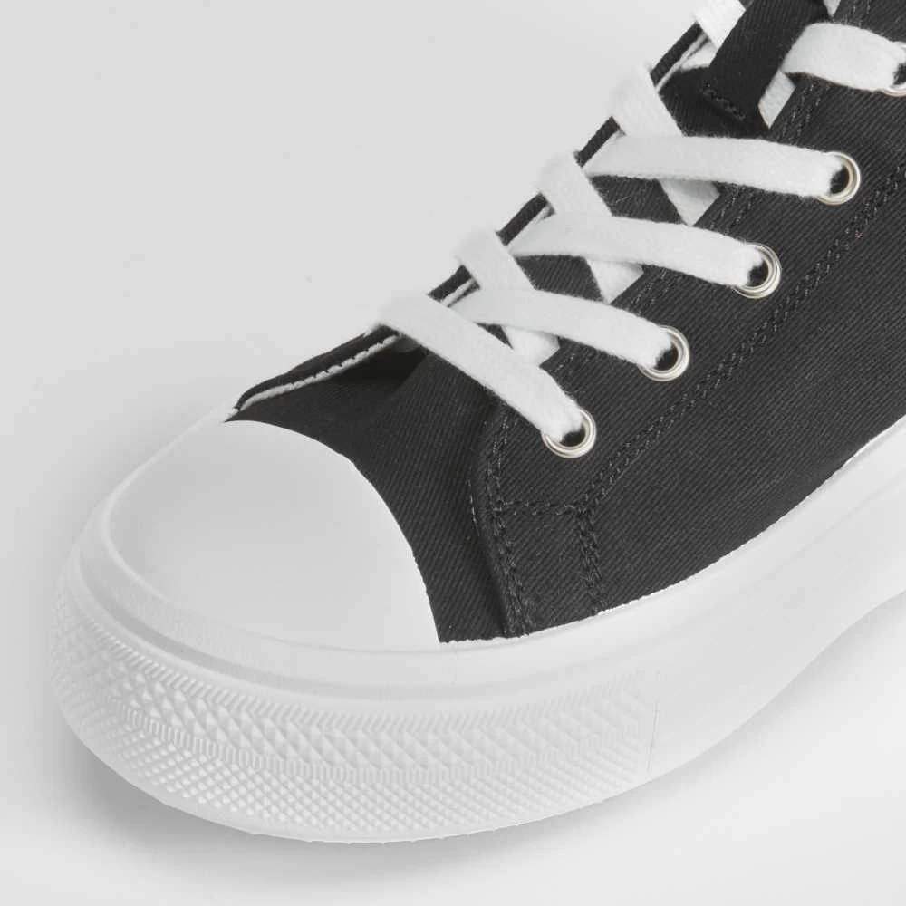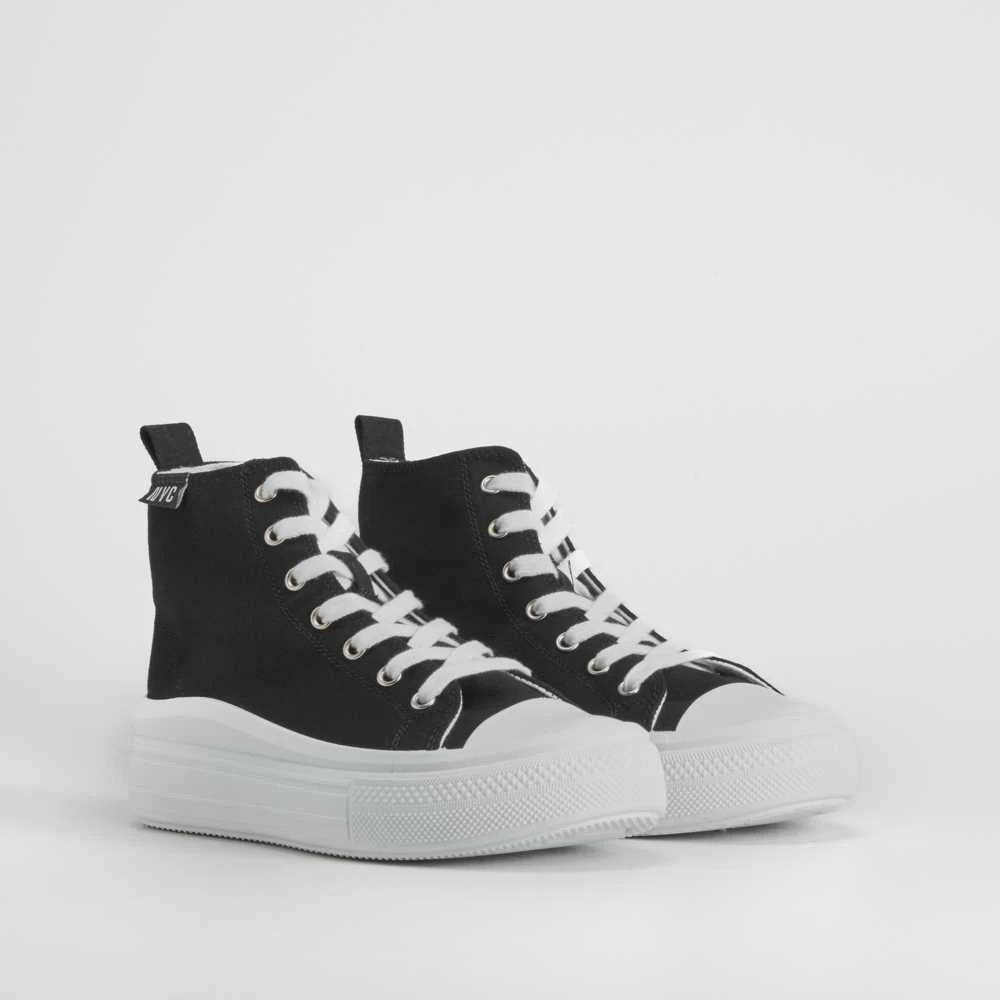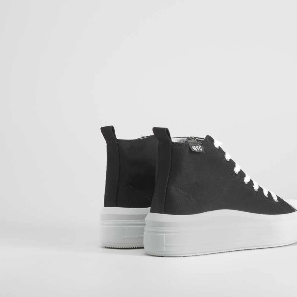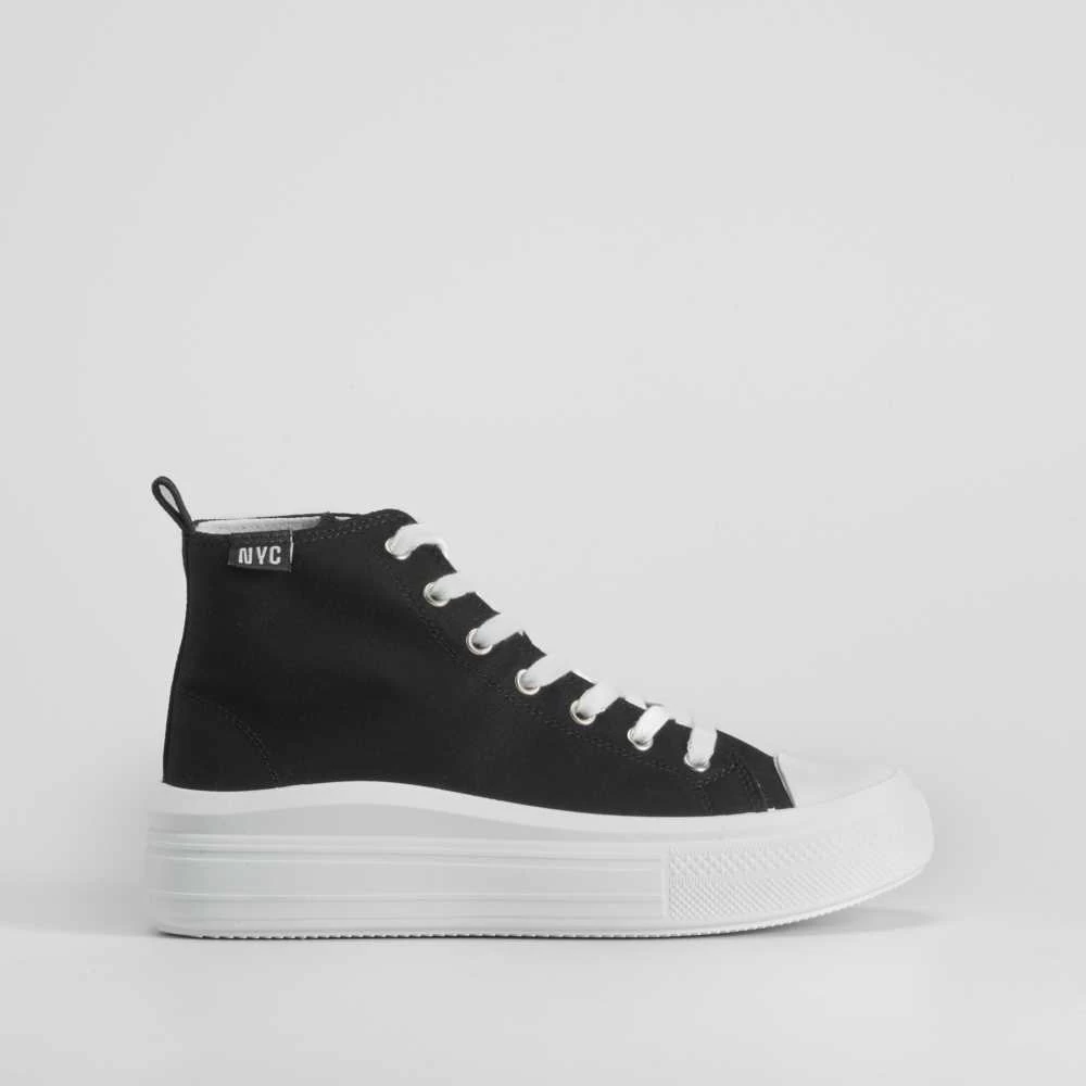 Zapatilla alta de lona con plataforma con onda de la marca NYC. Modelo en color negro con puntera de caucho y cierre de cordones.