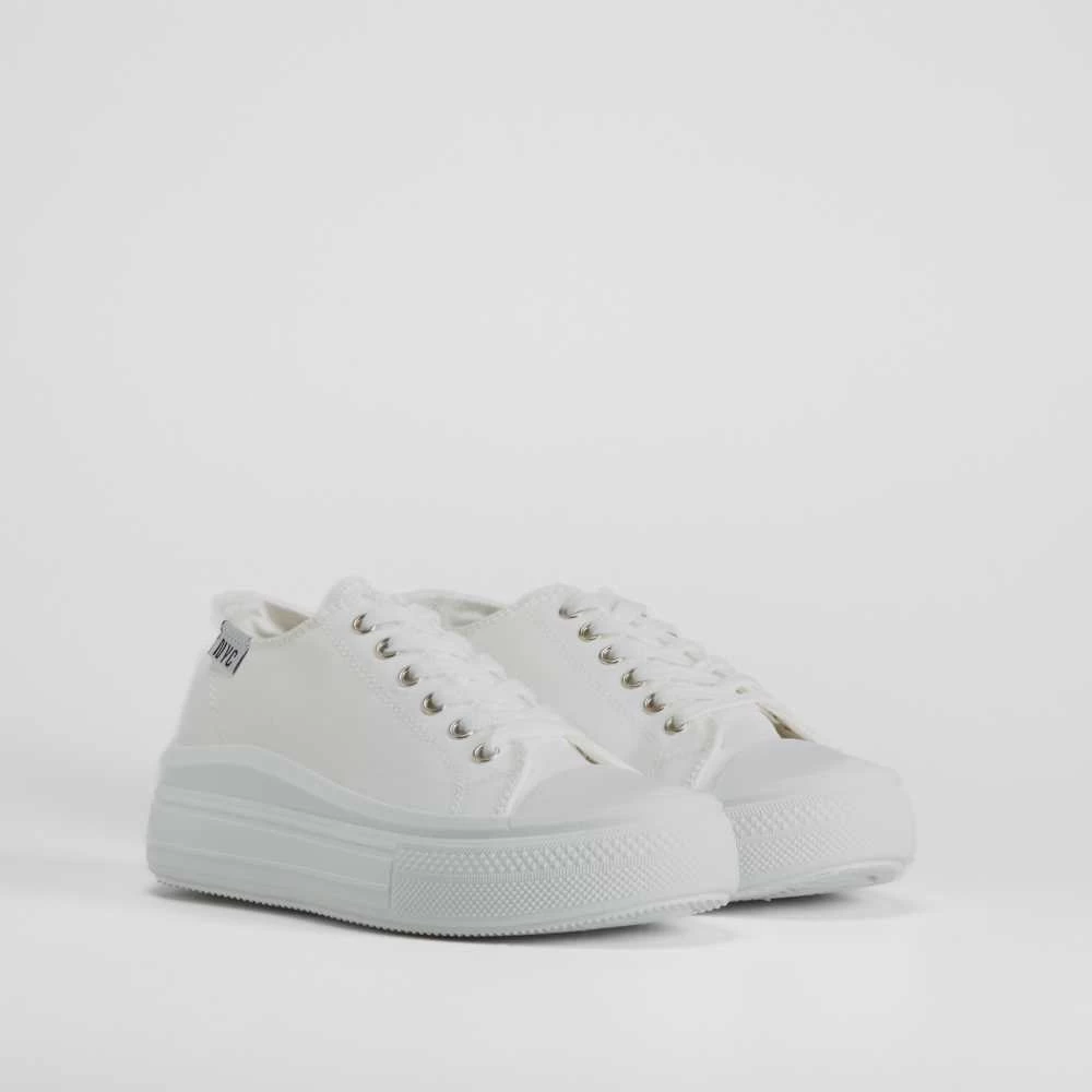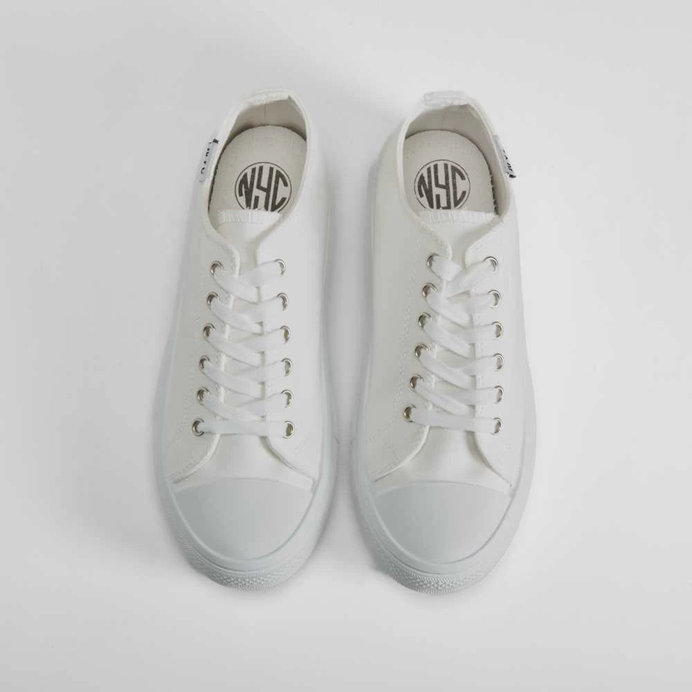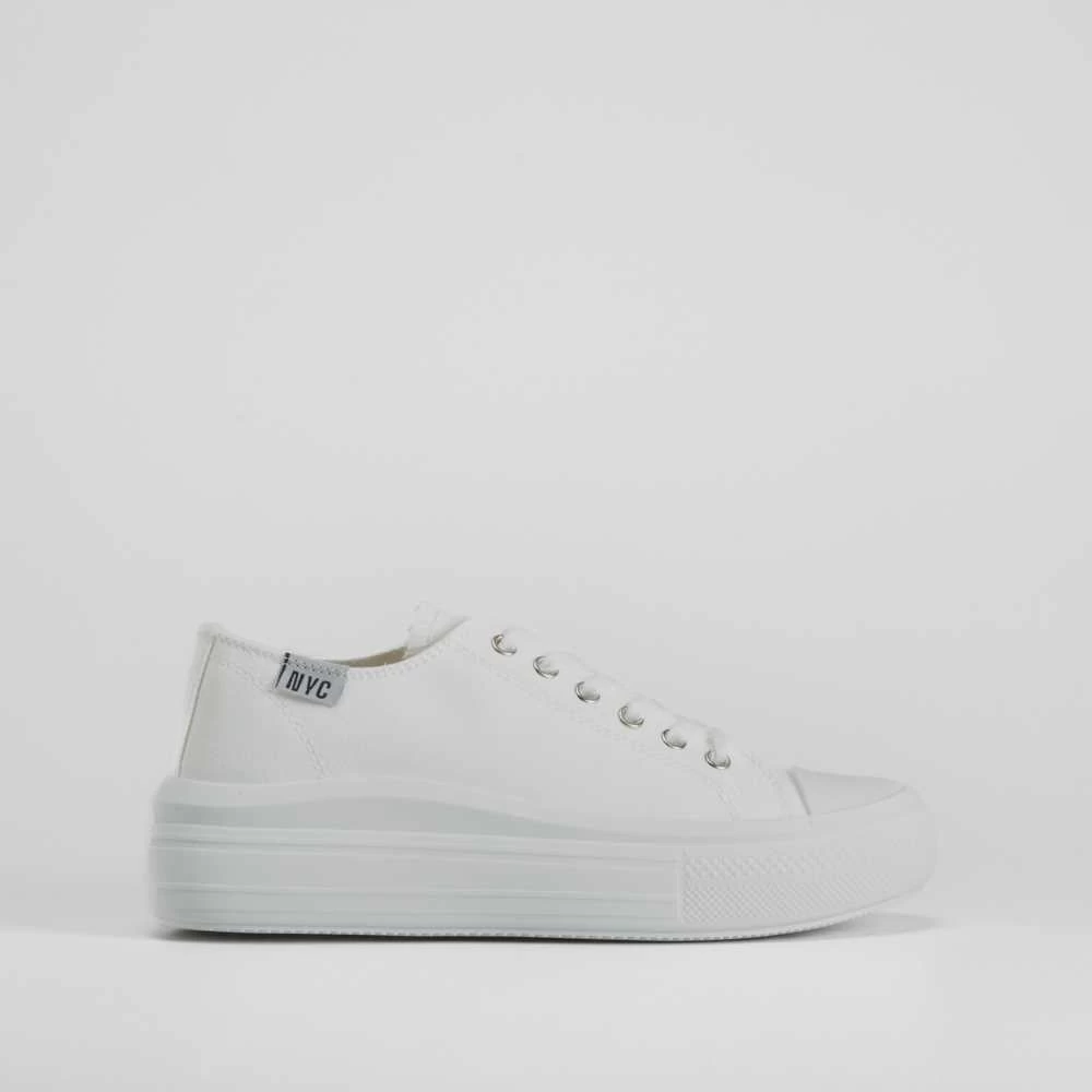 Zapatilla de lona de la marca NYC. Exterior en color blanco con detalle contrastado en el lateral, cierre de cordones y piso doble combinado. SERIE R: Algodón 50% reciclado.ondaNYC