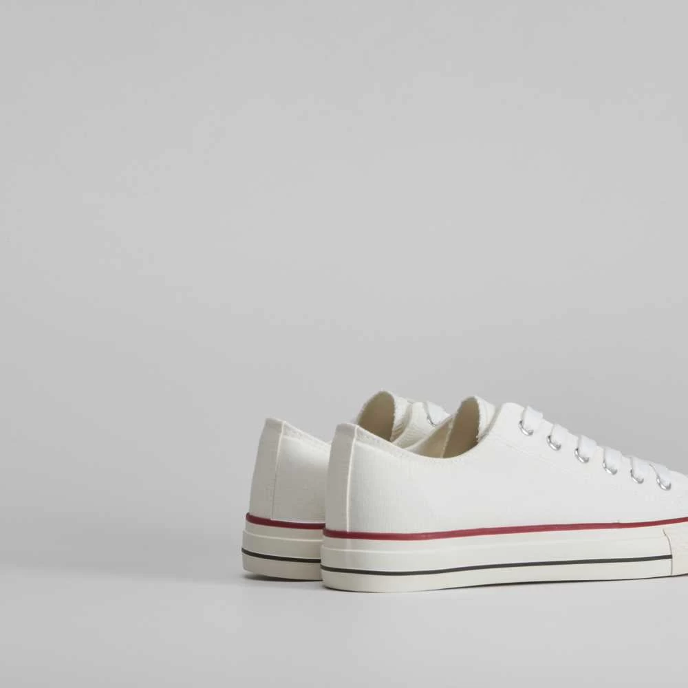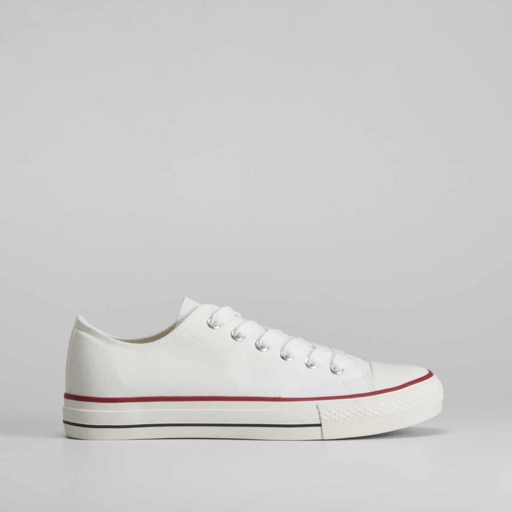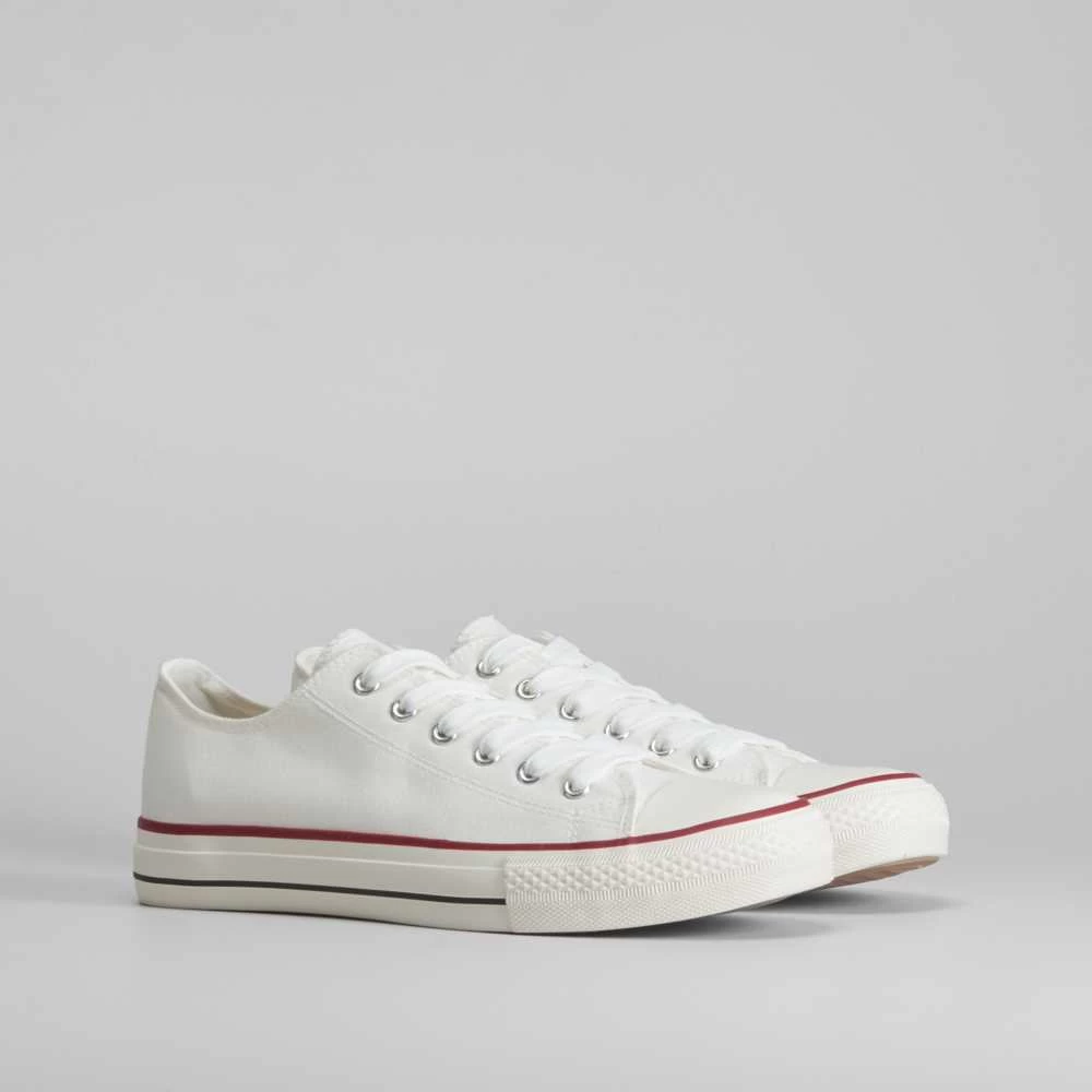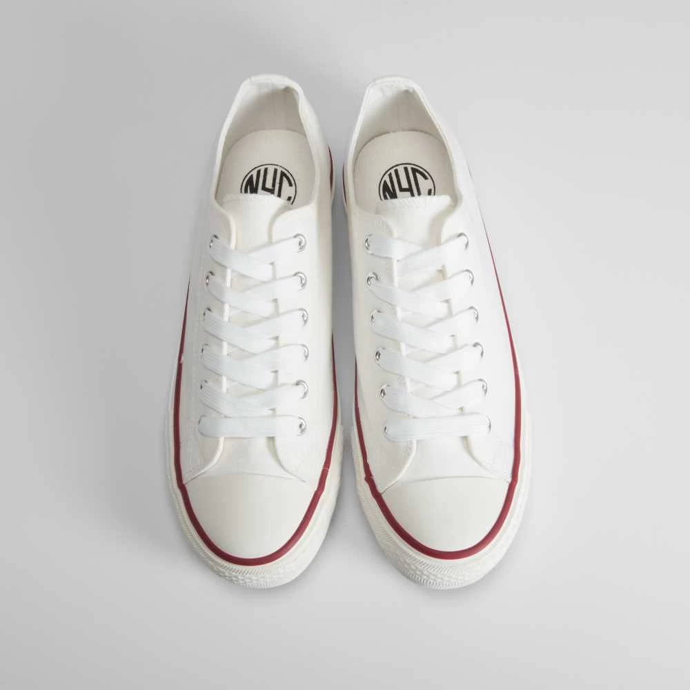 Zapatilla de lona básica de la marca NYC para hombres. Exterior liso en color negro, blanco, azul y rojo. Cierre de cordones y puntera de caucho.