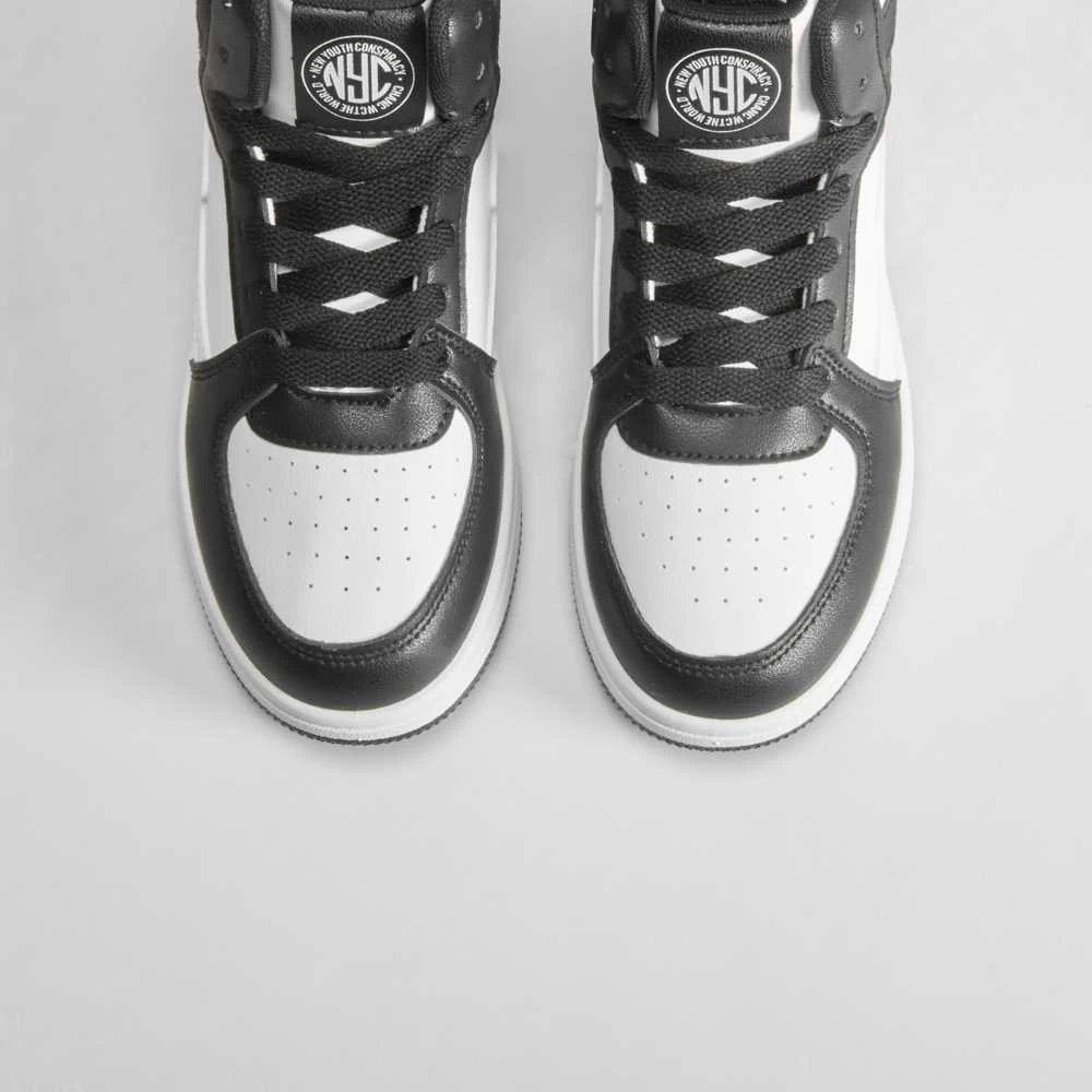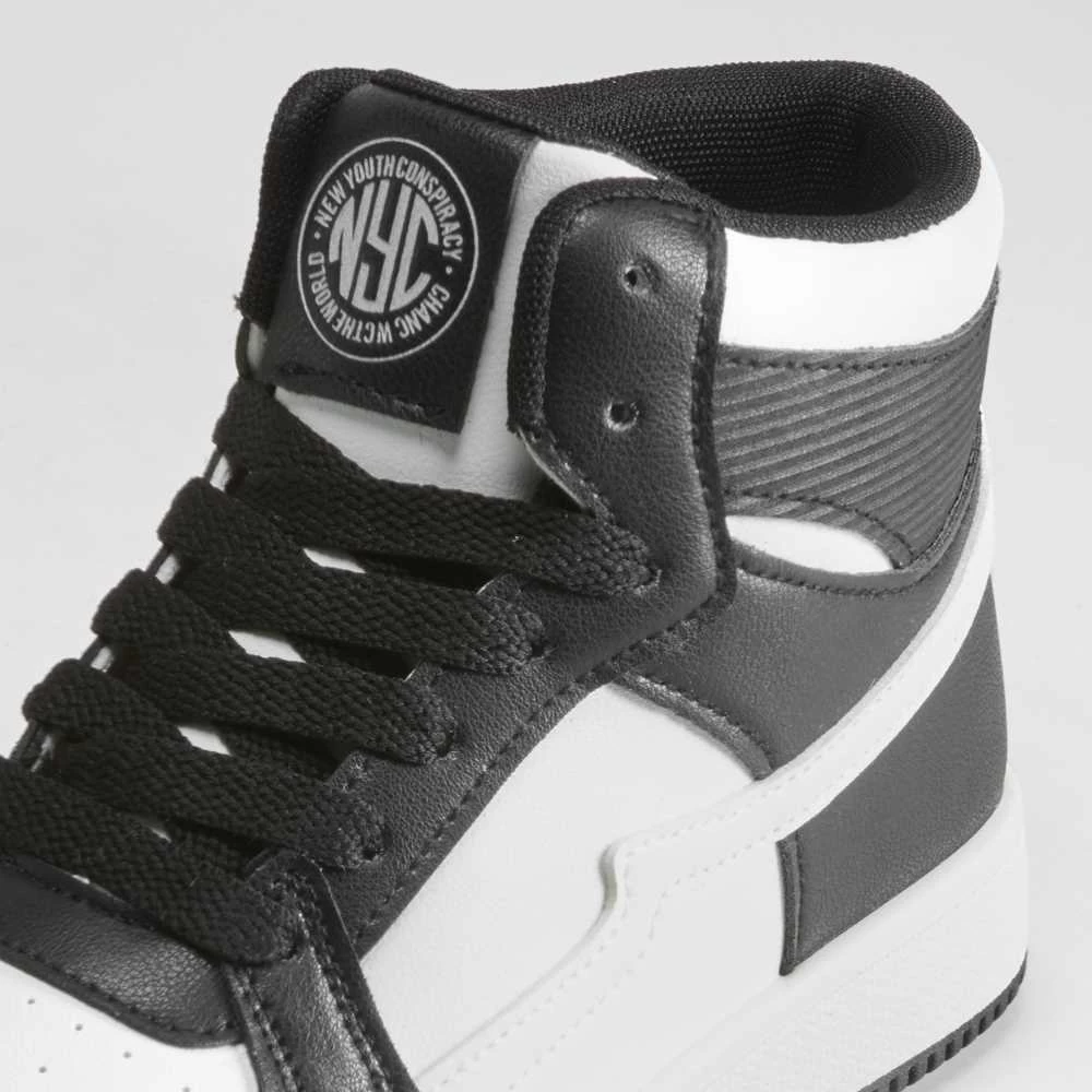 Zapatilla urbana alta bicolor para mujer de la marca NYC. Modelo en blanco y negro con cierre de cordones.
