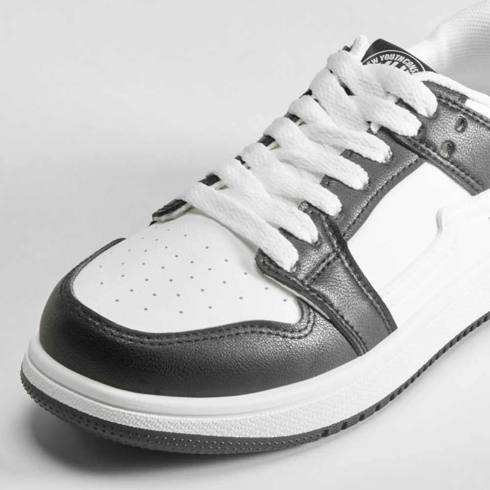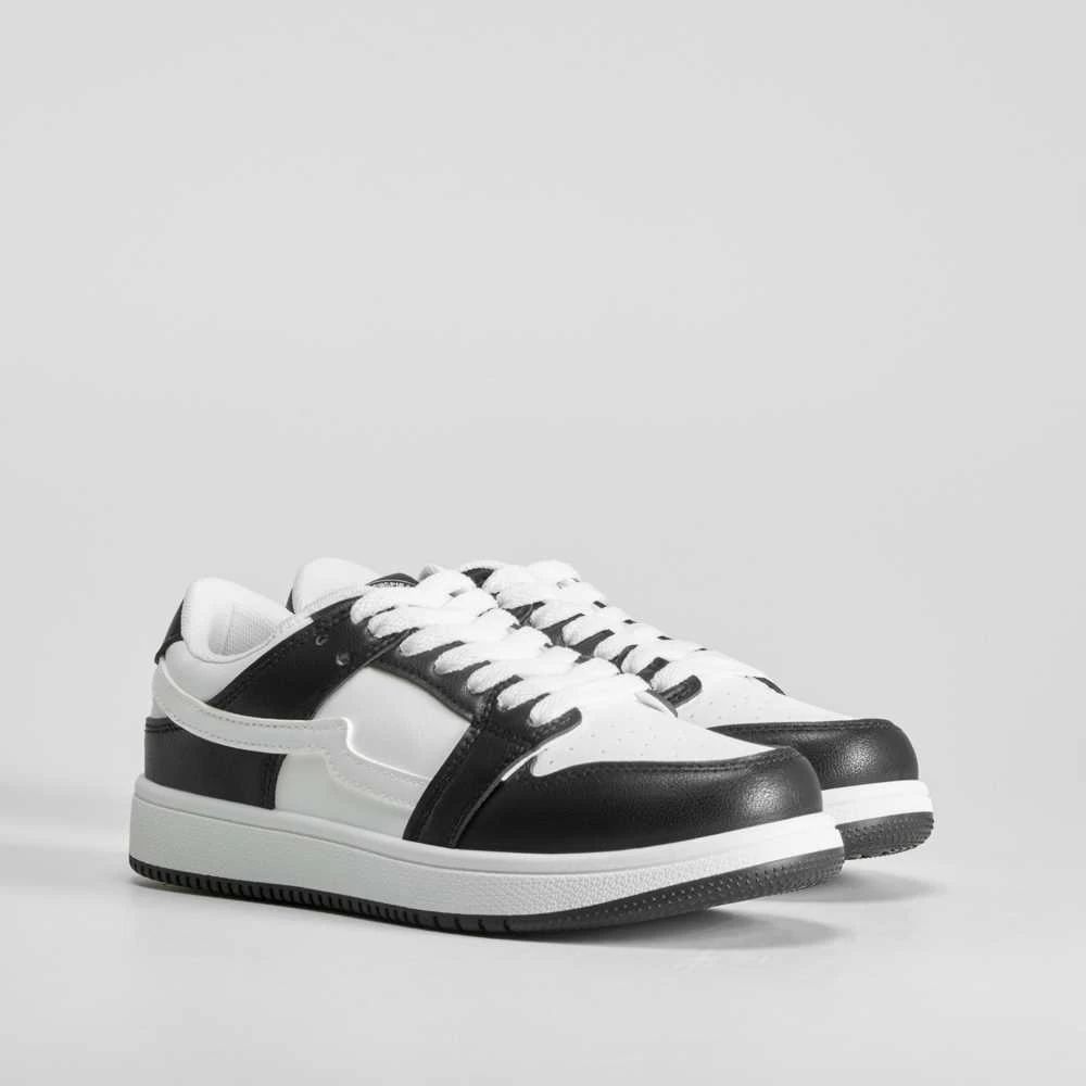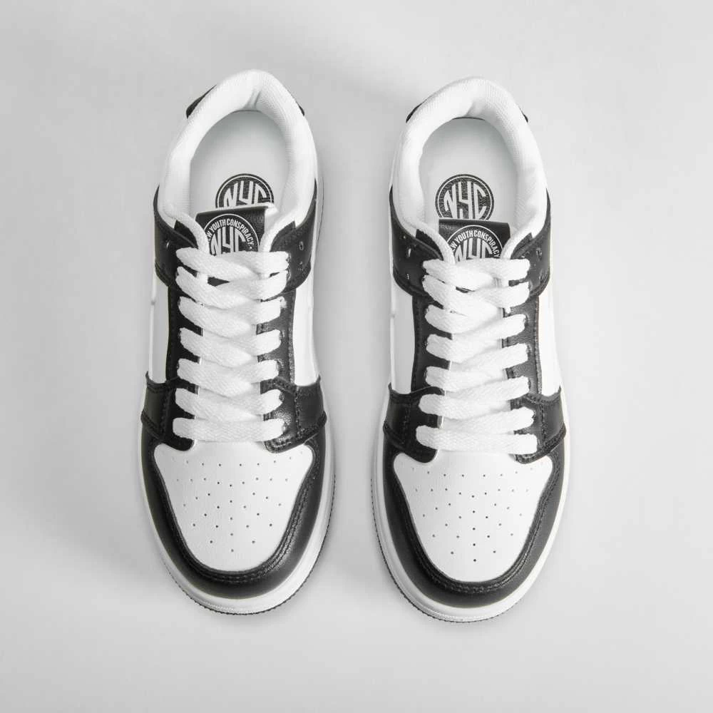 Zapatilla urbana bicolor para mujer de la marca NYC. Modelo en blanco y negro con cierre de cordones.