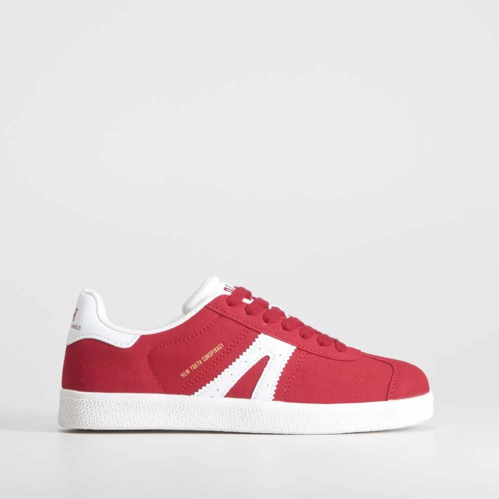 Zapatilla urbana roja con logo contrastado de la marca NYC para mujer.