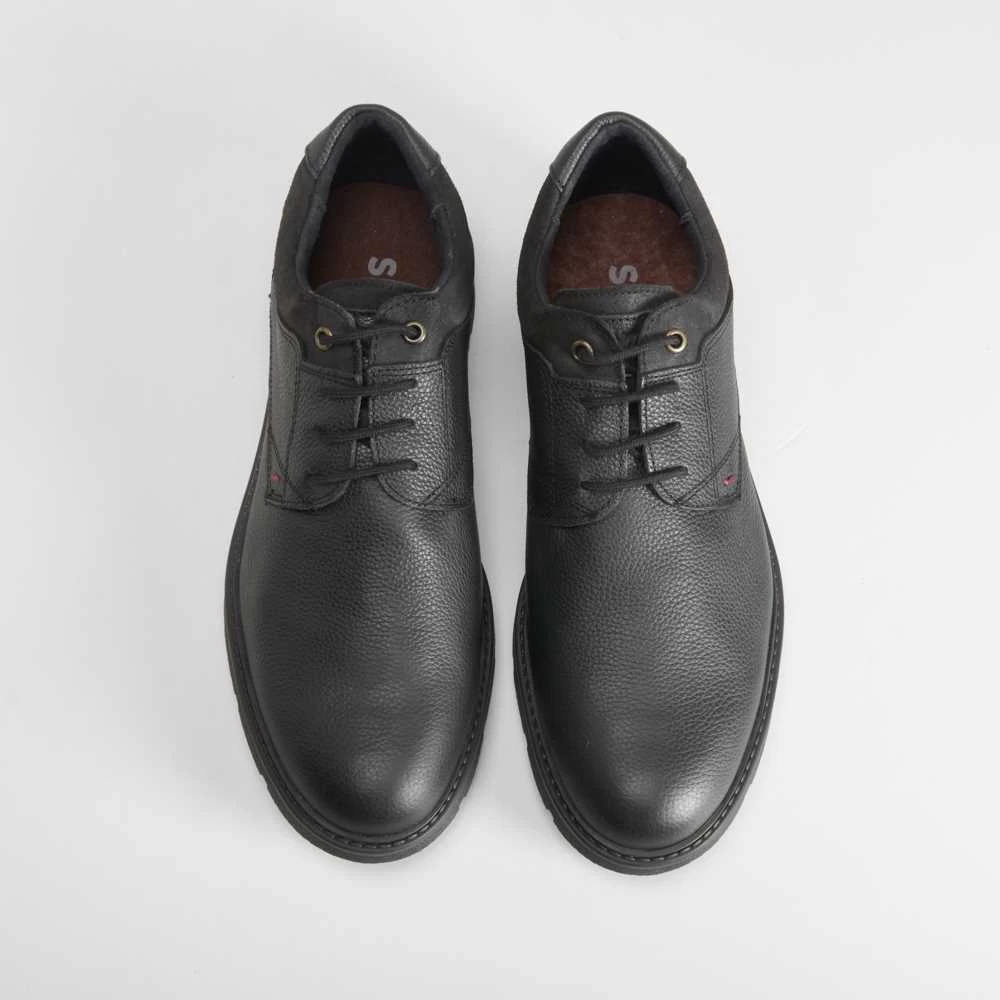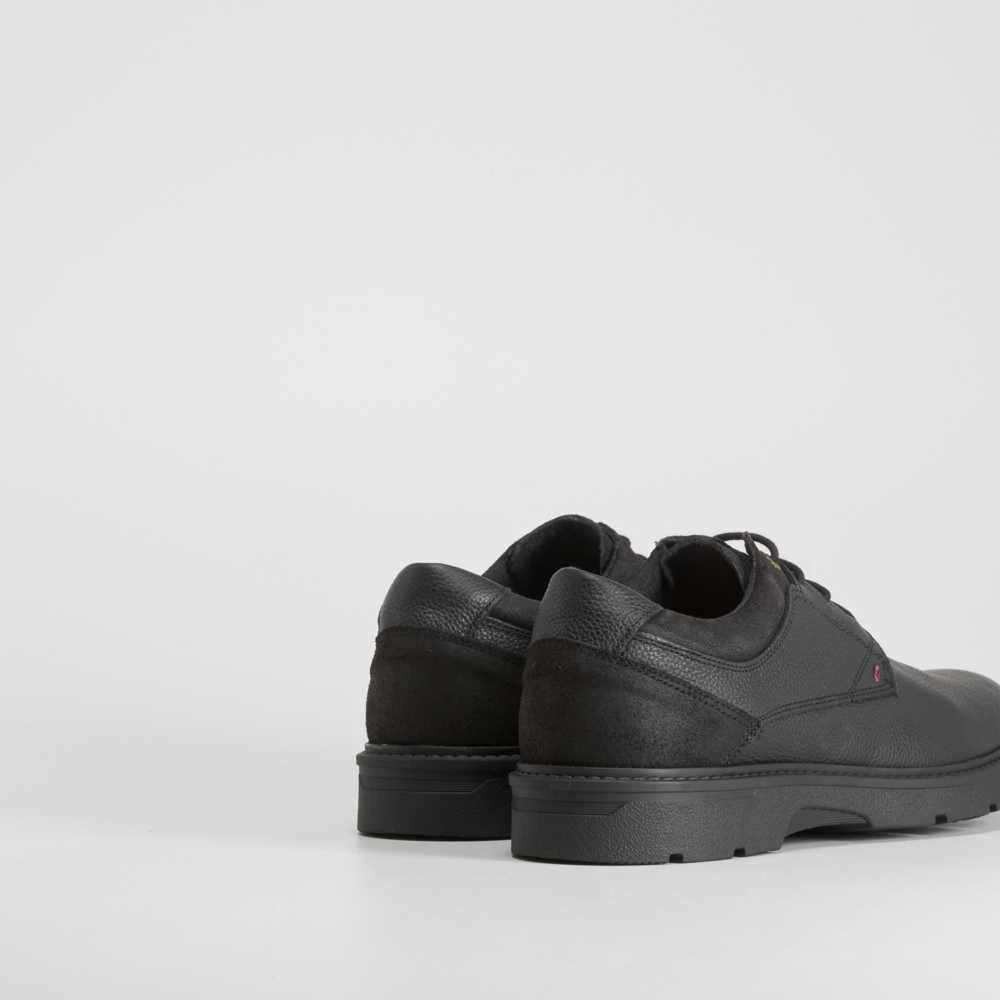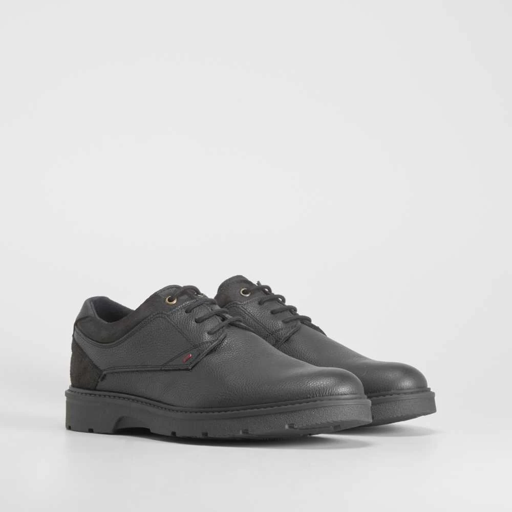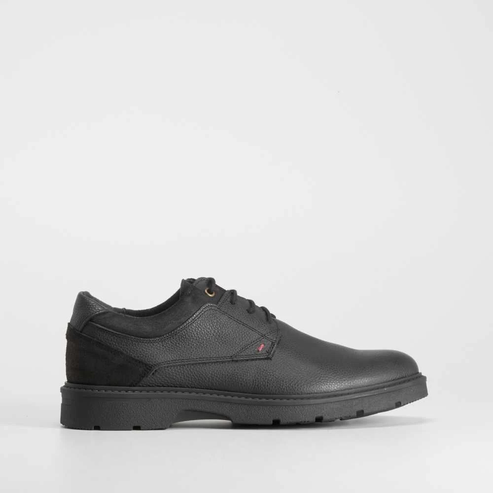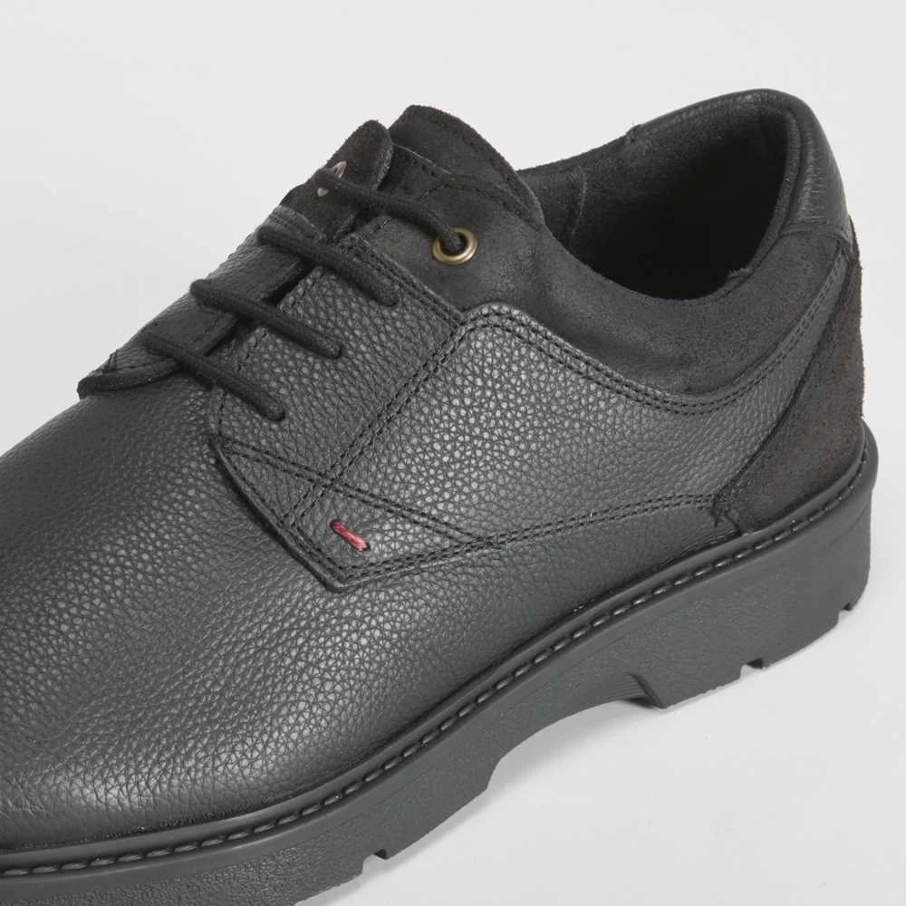 Zapato blucher casual de piel con diseño robusto de la marca SENDA ROAD. Modelo en color negro con cordones encerados.