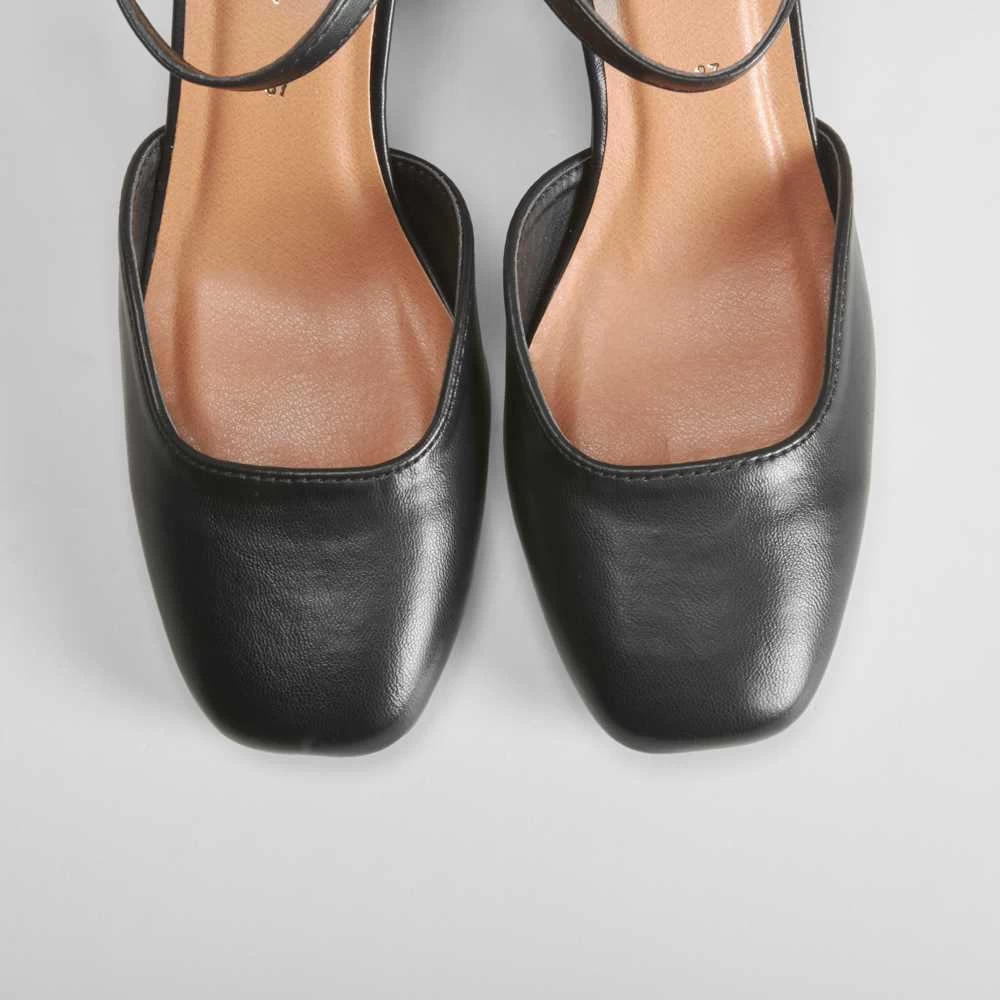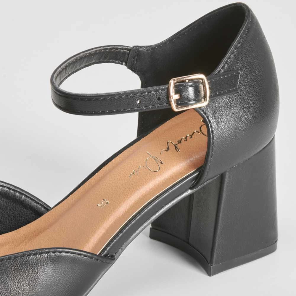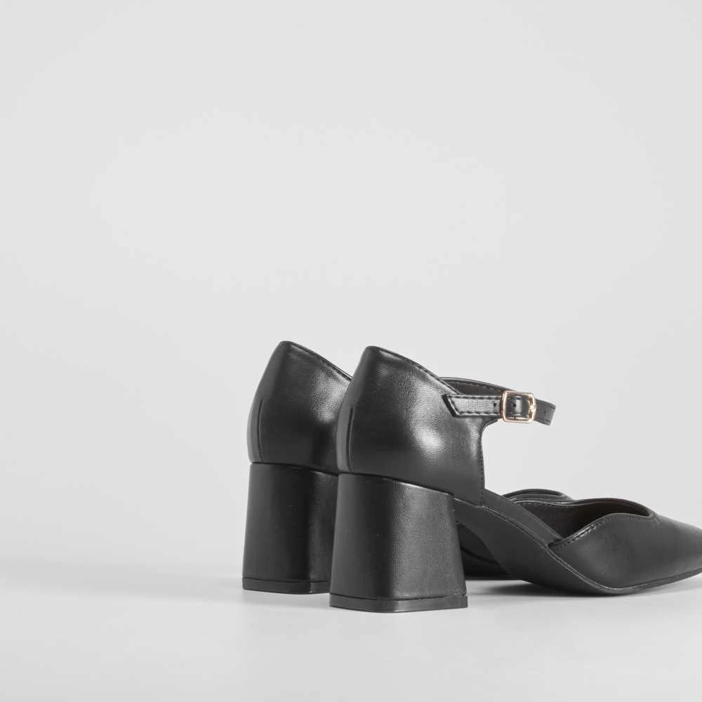 Zapato negro de tacón de PICCOLA PIU. Pulsera con cierre de hebilla y tacón ancho de 7cm de altura.