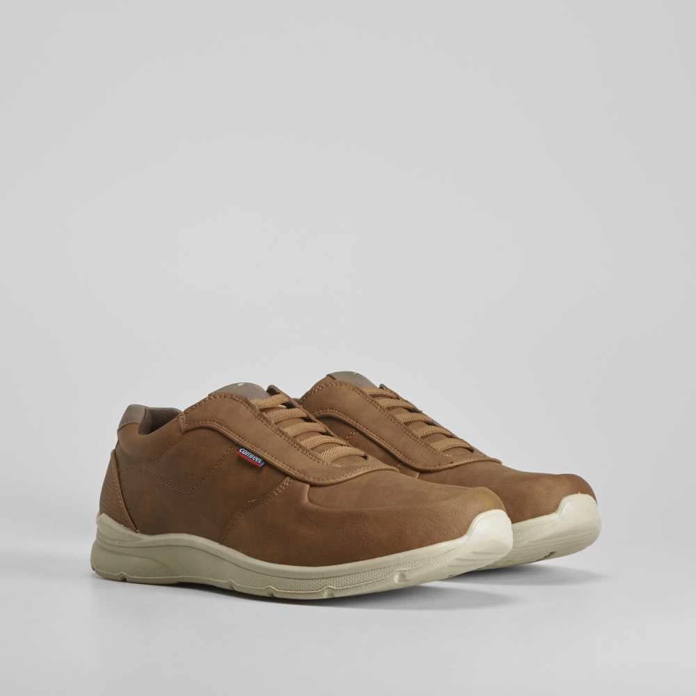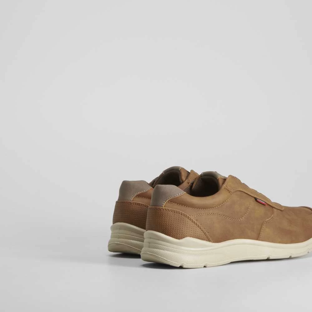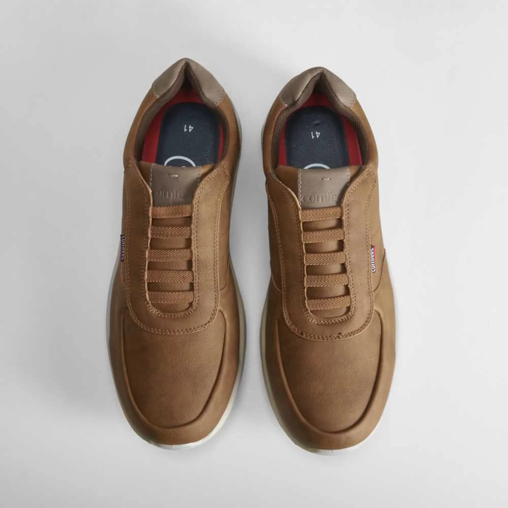 Deportiva casual de color camel de COMFEET para hombre. Cierre de cordones elásticos para un calce más fácil. Tecnología CUSHION TECH: Plantilla de poliuretano que se adapta al pie y proporciona una mayor sensación al caminar. Descansa sobre sus estrías de flexión que facilitan la torsión del pie. Recupera su forma habitual lo que permite una mayor amortiguación.