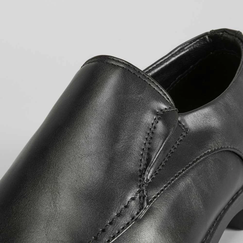 Zapato de vestir de MR HANSEN con un look sencillo y funcional. Corte en color negro y cuero con una puntera pronunciada. Dos elásticos en el copete para un calce más sencillo y un mayor ajuste. mssvest