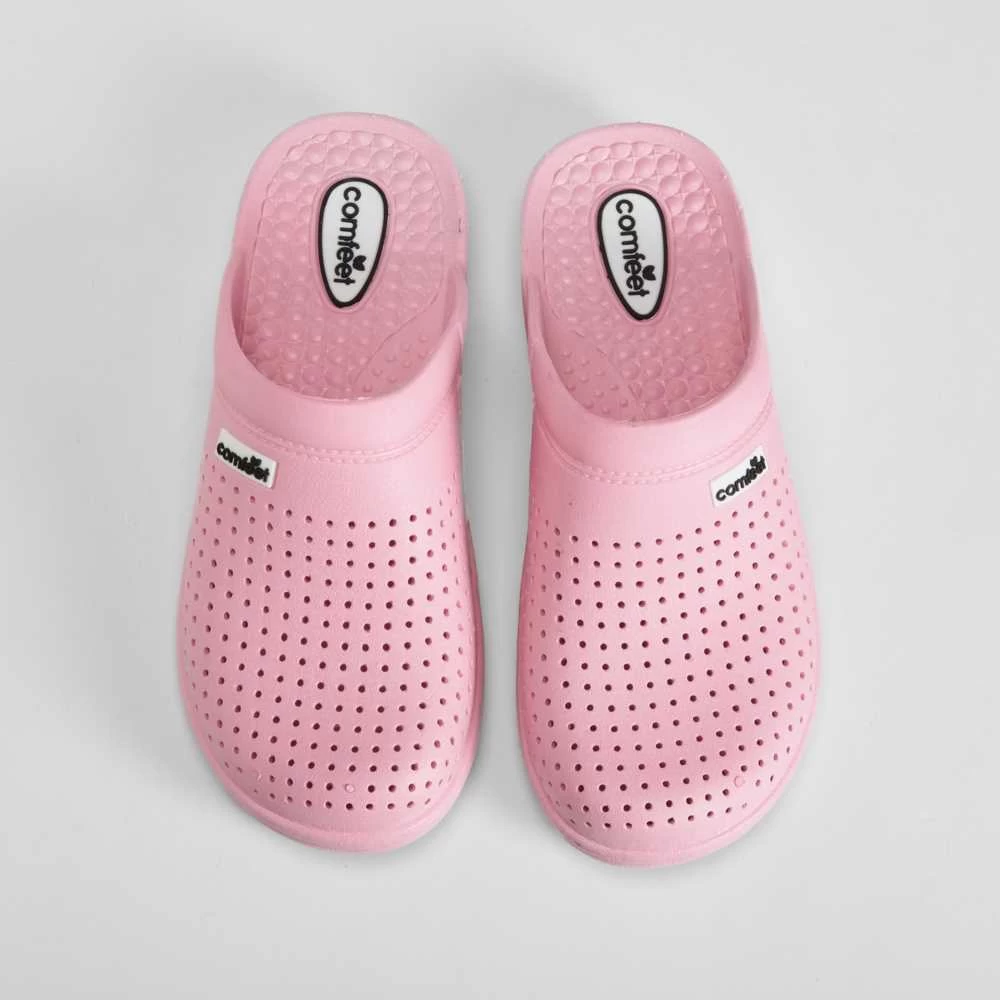 Zueco básico de la marca COMFEET. Exterior punteado en color rosa.